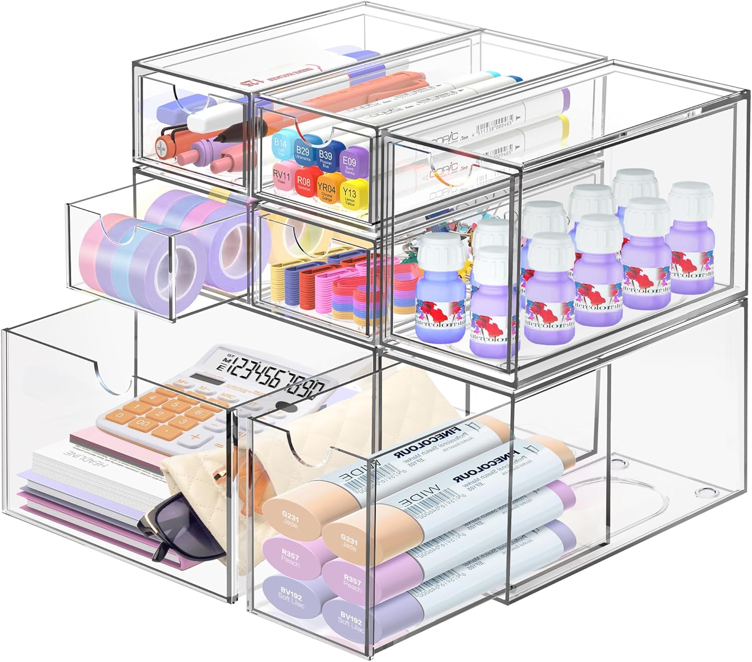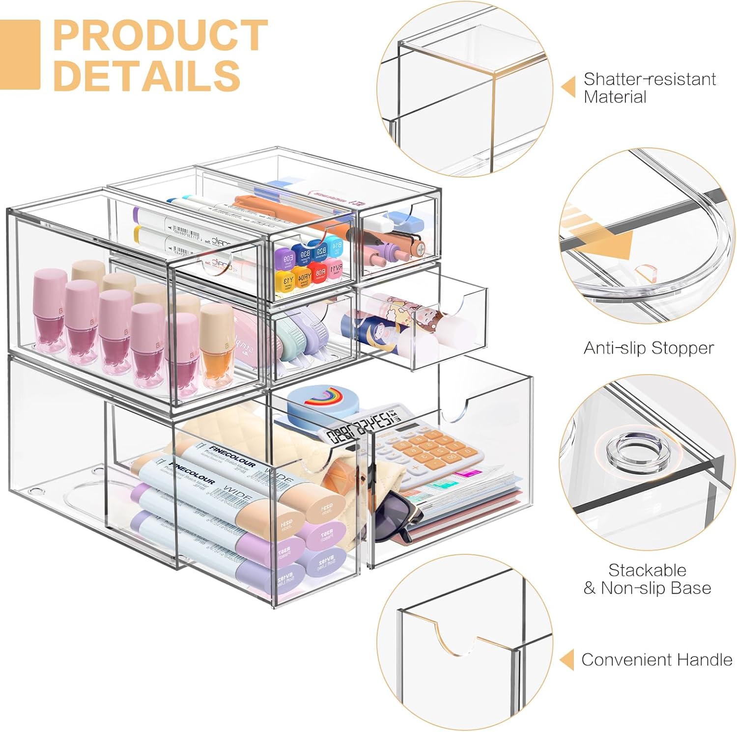 - Stackable & Space Saving: Each drawer can be separated for individual use, and the bottom of each drawer is designed with non-slip slots that allow you to stack multiple layers without worrying about slipping, helping you to maximize desktop space by increasing vertical space