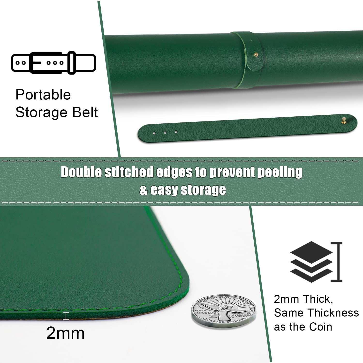 - Versatile Usage Large Mouse Pad: Leather computer pad in 5 sizes and 10 colors. A portable storage strap allows you to roll up the desk pad and take it with you. Accommodate a laptop, mouse, and keyboard, which can be used as a mouse pad, for writing, and painting. A great choice for office work, and home.