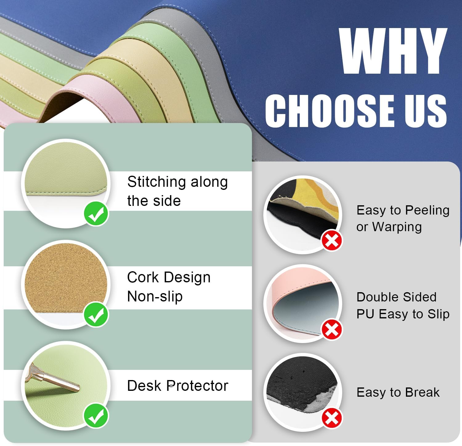 - Superior Protection Mat for Desk: Durable PU leather and cork material, provide reliable protection for your desk surface. Safeguard your tabletop from everyday wear and tear with our Dual-Sided Desk Pad. This large mouse pad and desk mat combo is a protective barrier, preventing scratches, scuffs, and spills from damaging your workspace.