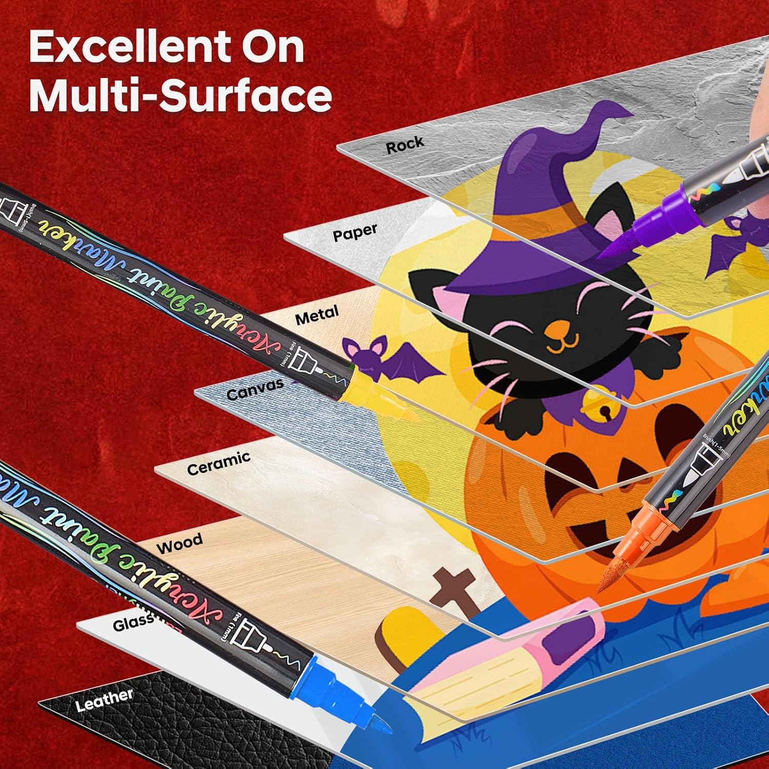 - CREATIVE GIFT: No matter in any occasion, this acrylic markers paint pens will delight and inspire the recipient, the dual tip markers is perfect as a gift for Easter, Halloween, Christmas, Valentine's Day, Thanksgiving, New Year or special holiday gifts for families, friends and rock painting enthusiasts. If you are not satisfied with our acrylic paint pen or have any questions, please feel free to contact us at any time.