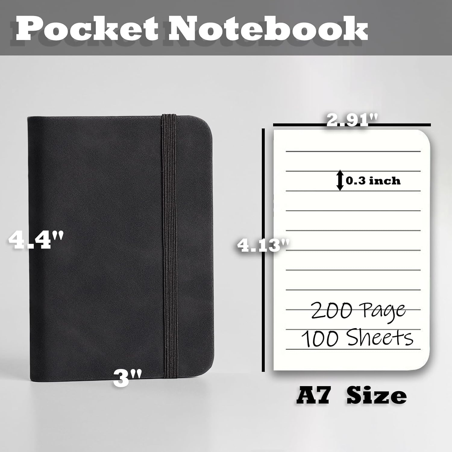 2 Pack Pocket Notebook Small Notebook, 3" x 4.4" Journal Notebook Hardcover with Thick Lined Paper, 200 Pages Leather Cover Mini Journal Notepad (Black)