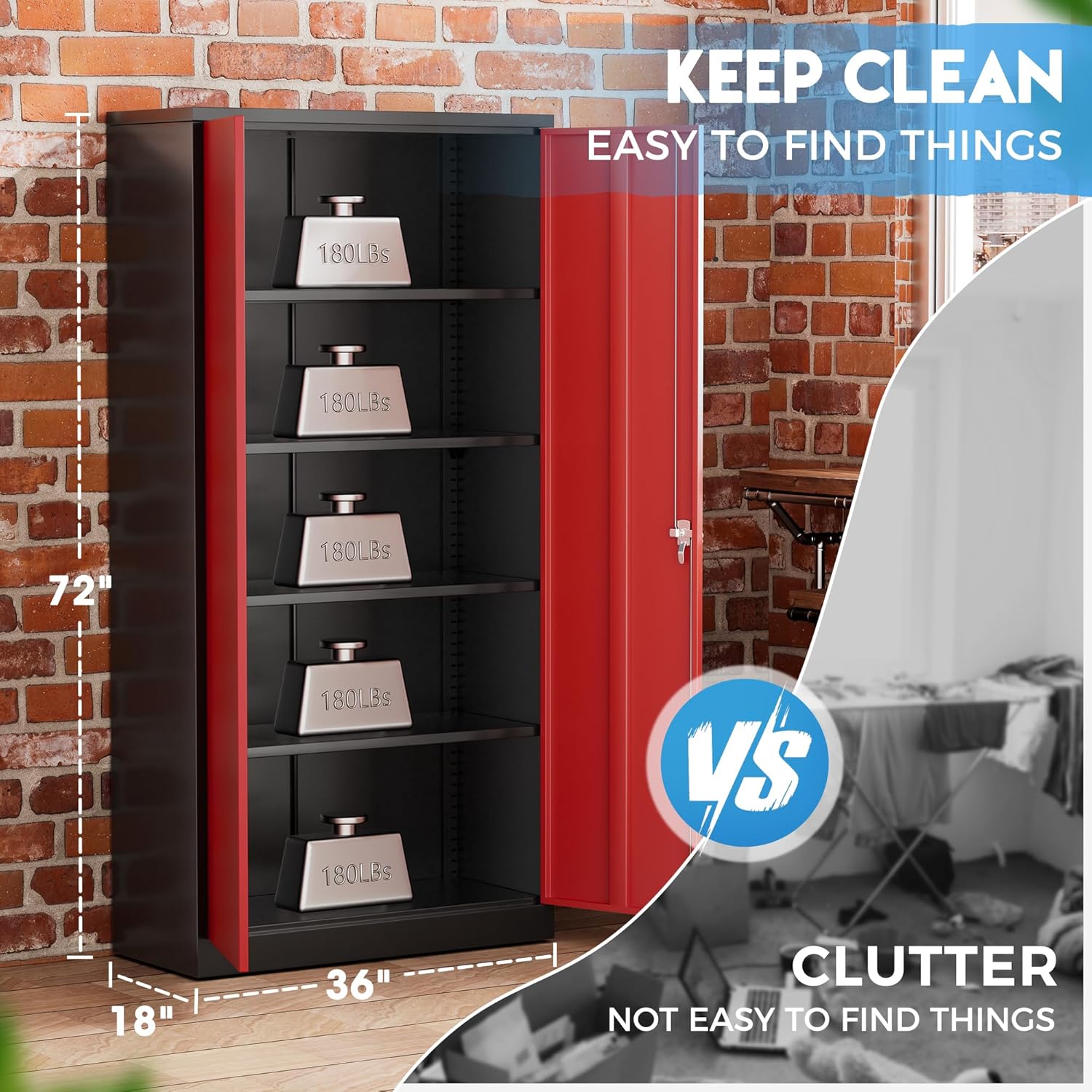 - 【Multiple Usage Scenarios】 Greenvelly metal file cabinet have great applicability and convenience. With a size of 18*36*72, you can put both large and small items into the tall cabinet. With five compartments, the tool cabinet helps to keep all items organized and easy to find, making you more efficient and tidy when working. Steel cabinet have greater resistance to corrosion, sturdiness, and moisture, making them ideal for use in garages, offices, schools, basements.