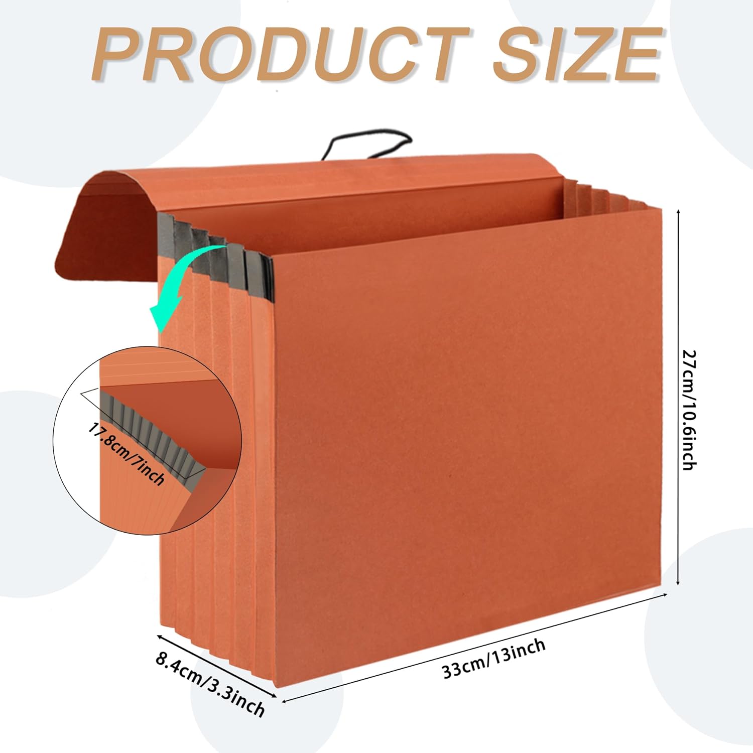 6 Packs Expanding File Pockets with Flap,Heavy Duty Expandable Folder Bag,Accordion File Folder,Elastic Cord Closure,Kraft Accordion File Organizer for Office,School,Home,Letter Size