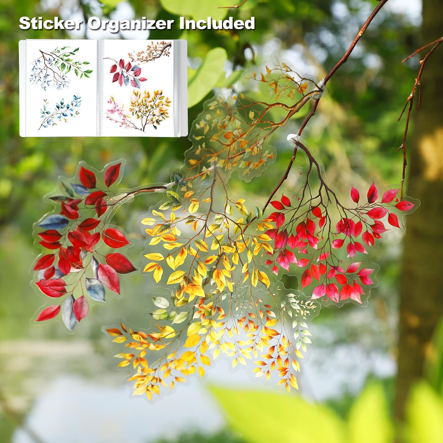 120Pcs Botanical PET Stickers, Branch and Leaf Designs for Scrapbooking Waterproof Journaling Supplies Junk Journal Ephemera with Storage Organizer