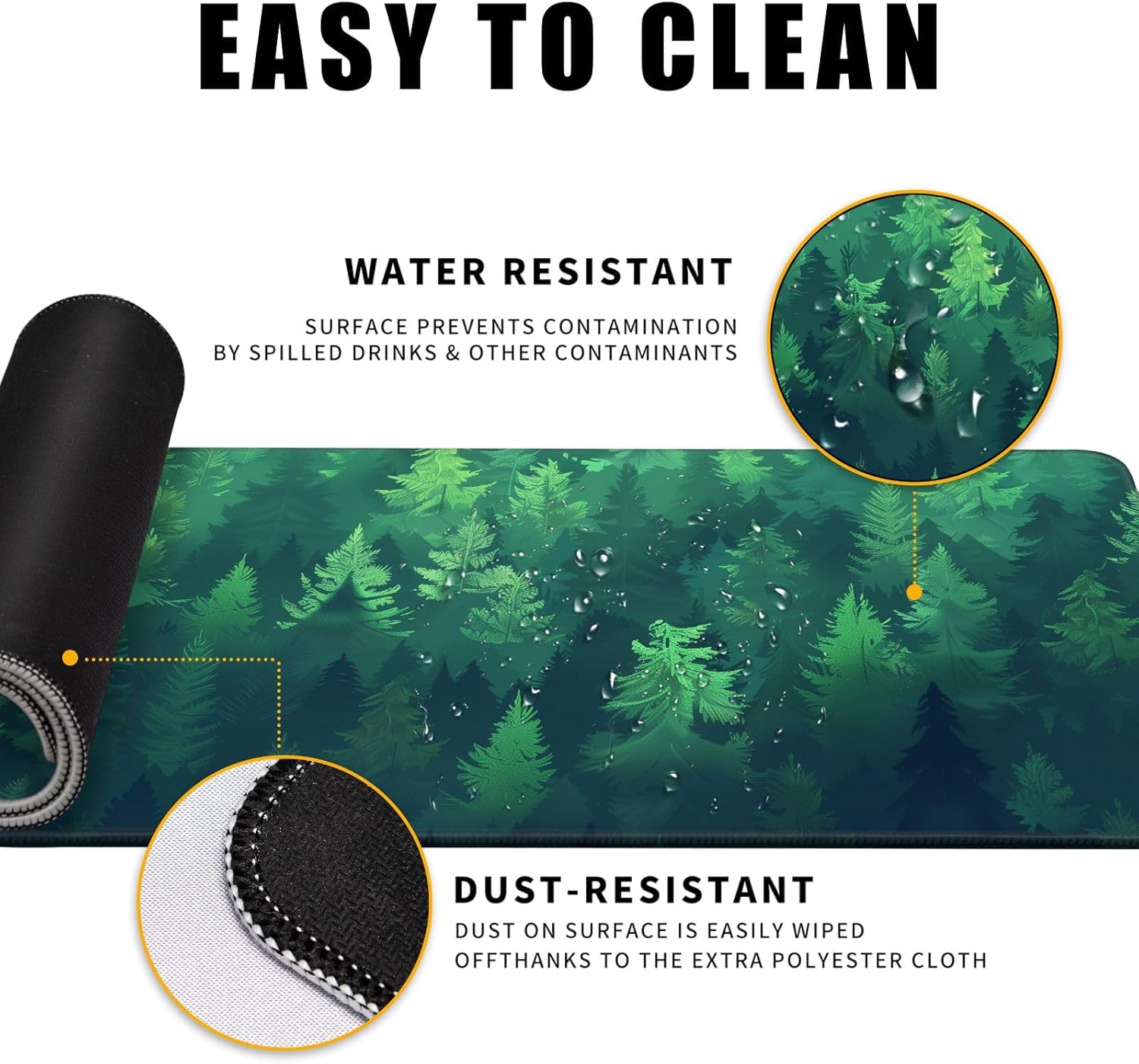 Forest Gaming Green Large Gaming Mouse Pad Keyboard Desk Pad Extended Mouse Pad Gaming Office Decor, Pc Laptop Mouse Pads Large (31.5x11.8 in) with Stitched Eges Non-Slip Base Mousepad XL