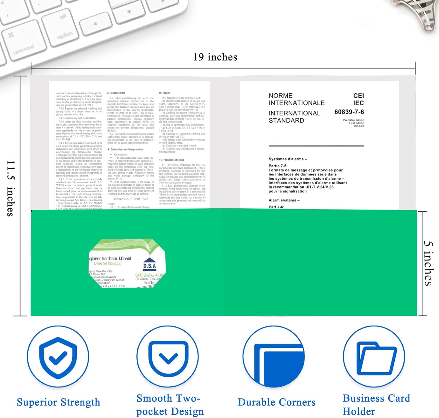 Zzrywuty 100 Packs Paper Folders with Pockets for Students,Businessmen and Office Workers,Letter Size,Two Pocket Folders with Card Slot for Office,Business,School Supplies (Green)