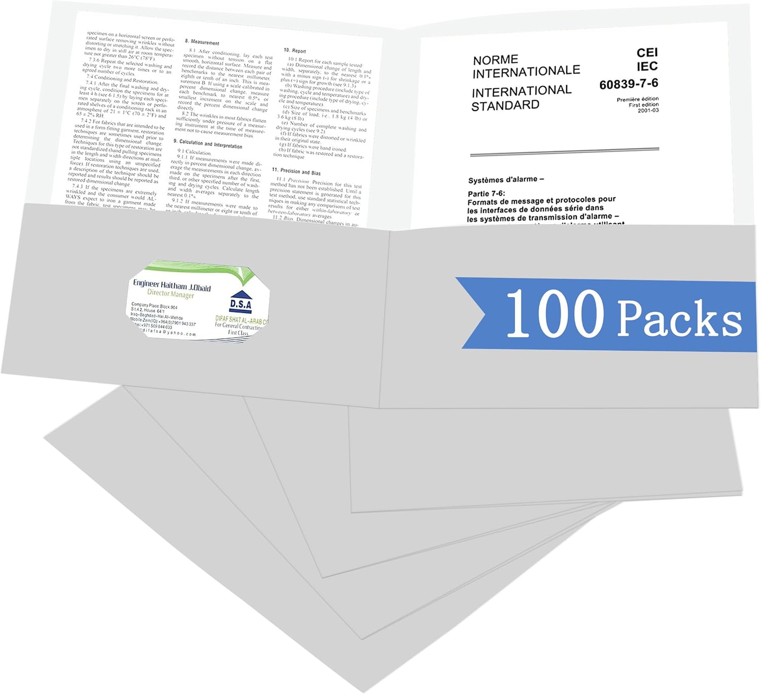 - Professional Design:Two pockets provide storage space for paper,brochures,and more,Each folders for documents measures 9" x 11.5",with two 5" pockets,holds (over 100) sheets of paper,and has a universal business card holder on the right pocket.