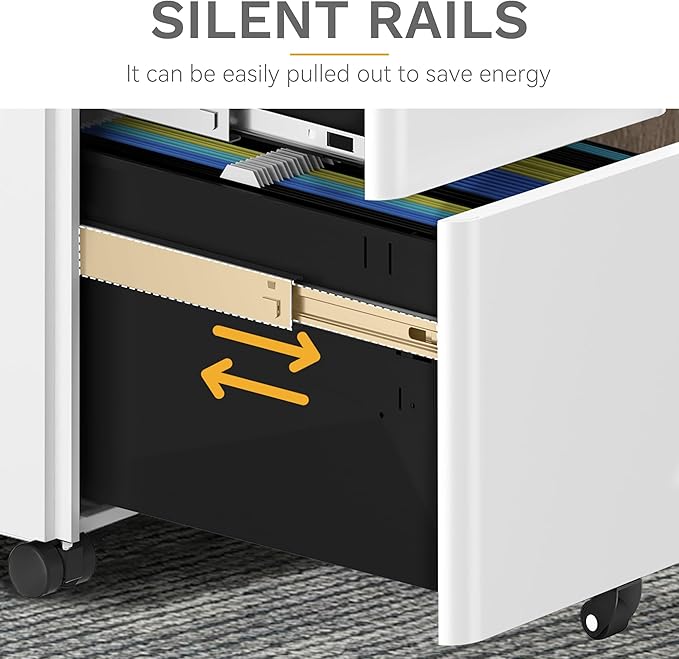 - Effortless Mobility with Wheels: Featuring 5 wheels in total, icluding 4 swivel casters (two of which are lockable) and an anti-tip central caster, this lockable filing cabinet offers easy and secure movement; Multi-directional swivel casters allow for smooth, 360-degree movement with minimal effort