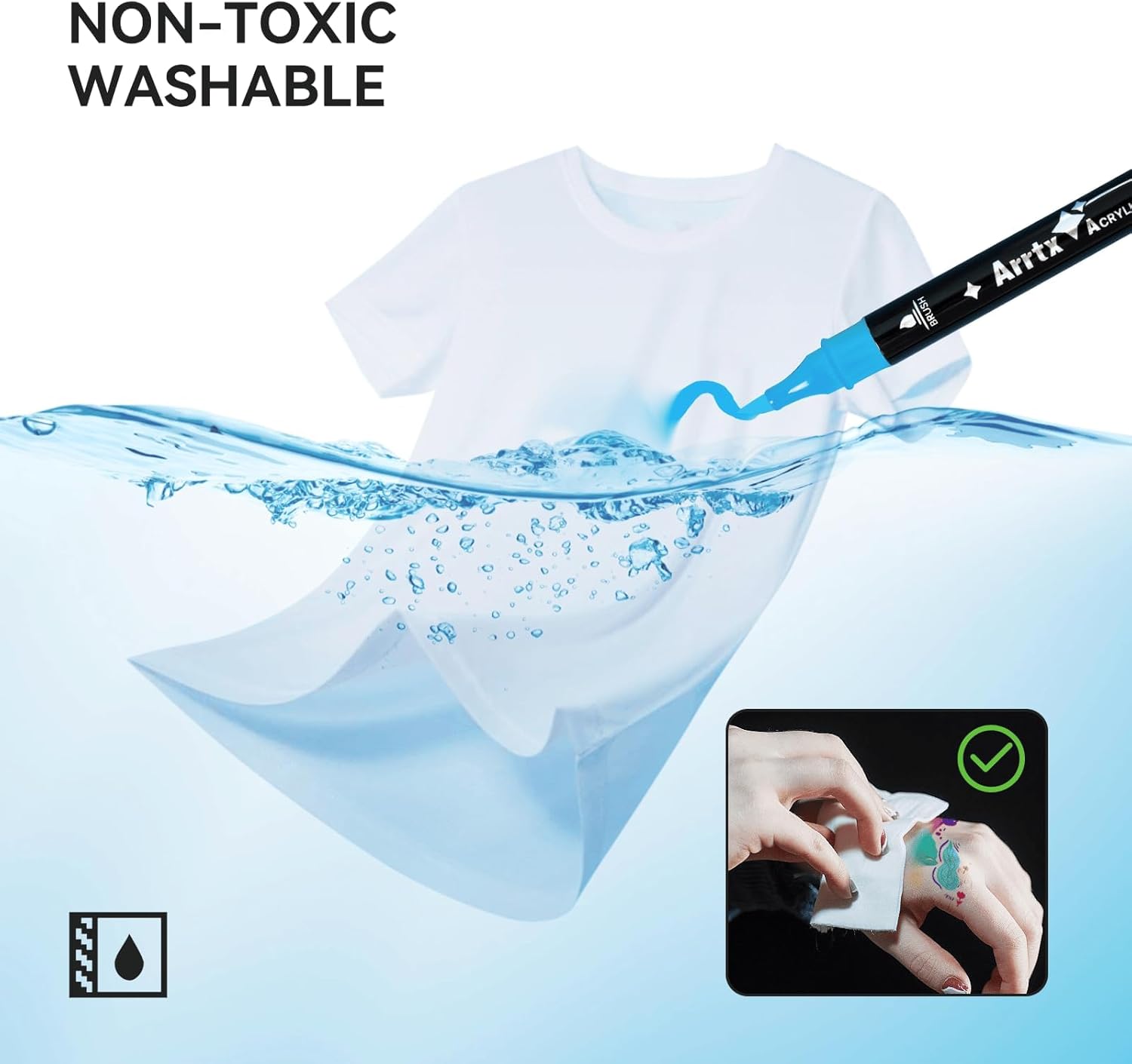 - Quik Dry and Waterproof - The highly pigmented paint is high covering, water-resistant, and abrasion proof allowing the application to any surface. Arrtx acrylic paint pens are water-based ink. These paint markers flow without flooding or jamming, it's permanent when dry. Note: Please tighten the cap and put pens horizontally if you don't use them.