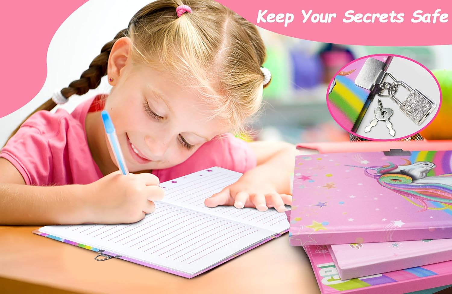 GINMLYDA Girls Diary with Lock for Kids, 7x5.25 Inches 160 Lined Pages Secret Unicorn Notebook for Girls Journal with Lock for Kids Pre School Writing Drawing Cute Girls Gifts for Birthday