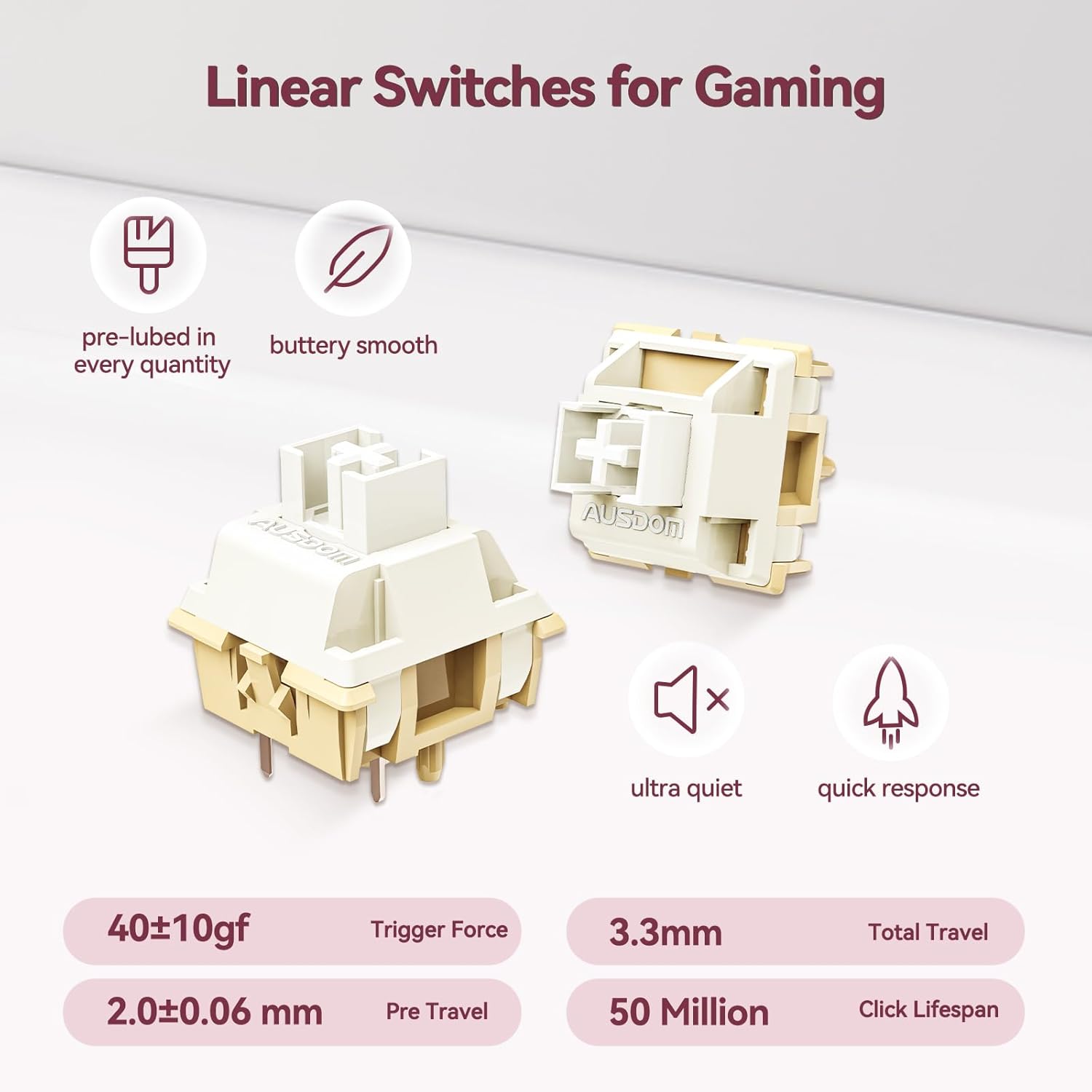- Adjustable Backlight System: Ausdom 98Pro is a pink gaming keyboard for work and entertainment. 16 lighting effects create a great gaming atmosphere in the gaming room. 4 backlight levels can be switched at will, allowing you to work or play in any lighting condition.