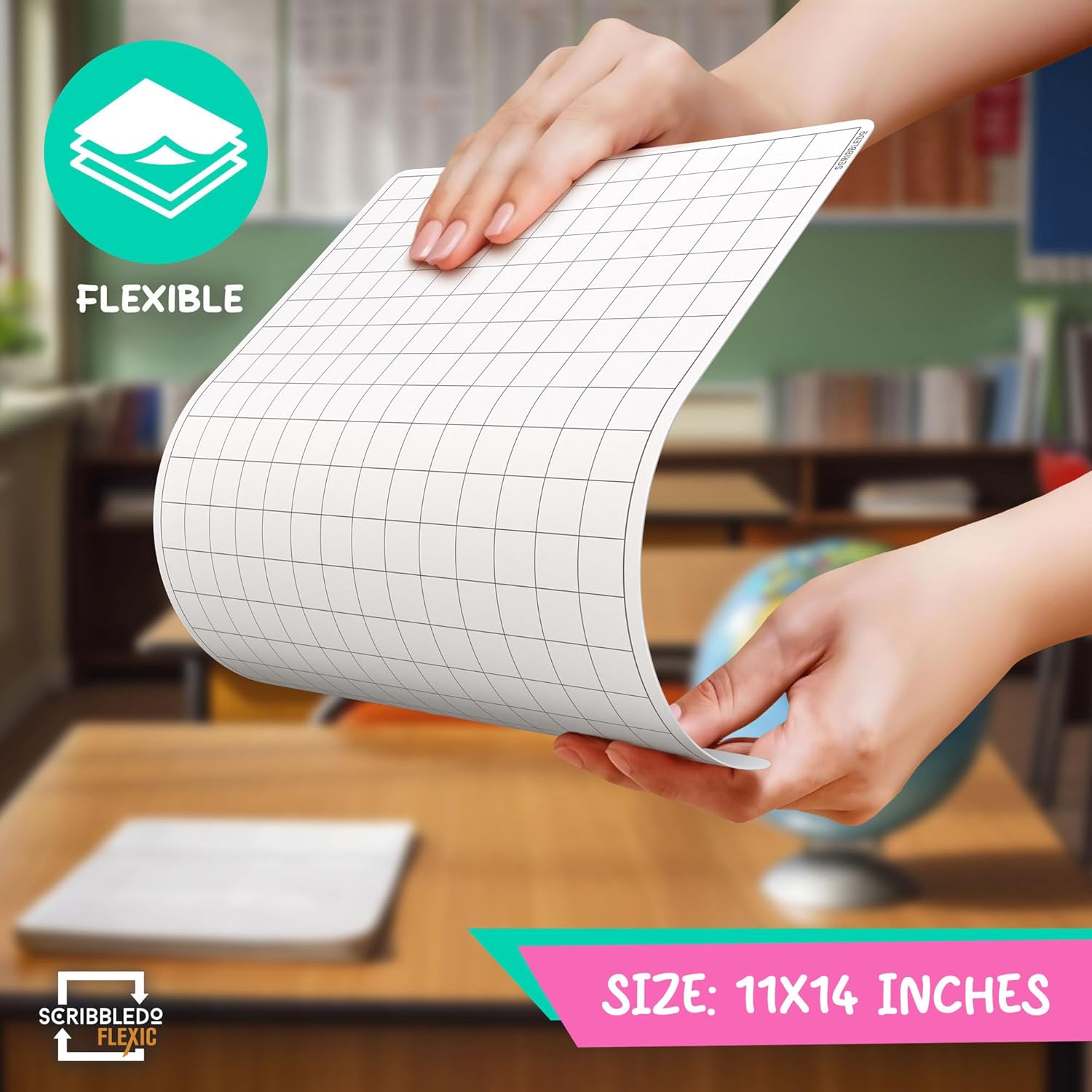 SCRIBBLEDO Large Grid Dry Erase Sheets 11”x14” Math Practice Small White Board Sheets Math Manipulatives Quad Graph Whiteboard Sheets Math Supplies Homeschool Teacher Students Classroom Pack of 10