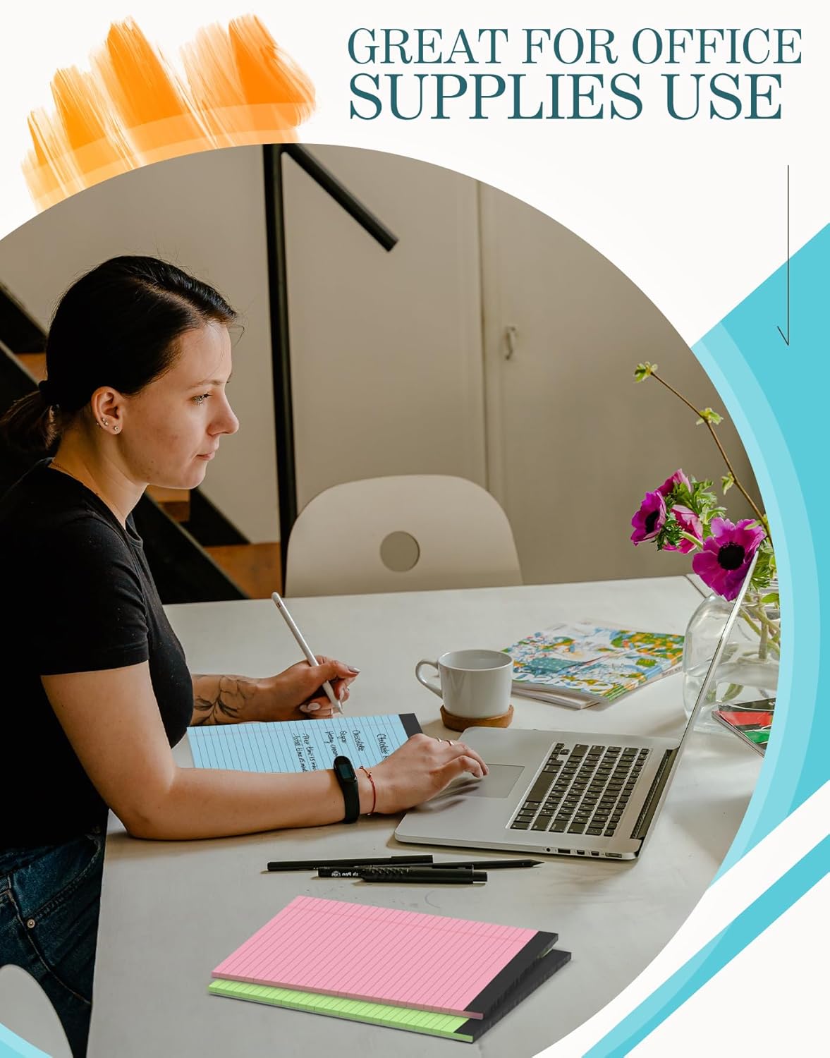 - 【LINED LEGAL PADS】- Each colored legal pads measures 8.5” x 11" and contains 30 sheets per legal pad, which perfect for writing notes, letters, thoughts, reminders lists and more. Quality lined paper pads 8 1/2 x 11 both sides with 11/32" wide lines format provides plenty of space for your notes. Colored note pads 8.5 x 11 wide ruled pads of paper improve the efficiency of your note-taking.