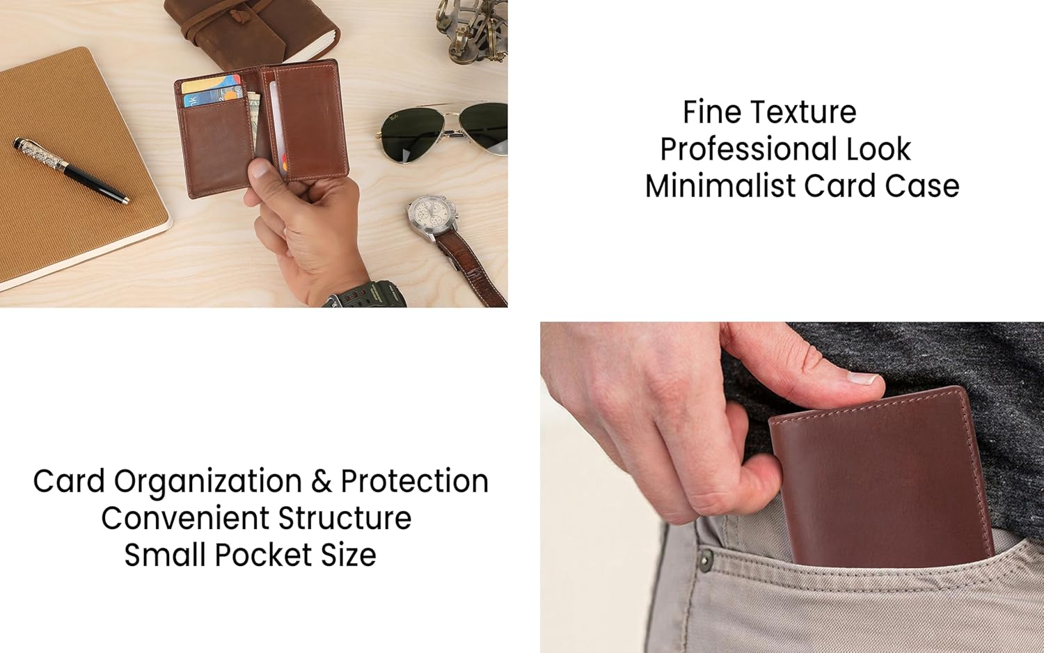 - ELEGANT DESIGN: Business card wallet comes with Single ID window to keep your ID card securely. It has one large pocket to accommodate approximately 10 to 12 business cards & separate slots to keep 3 to 4 cre-dit cards.