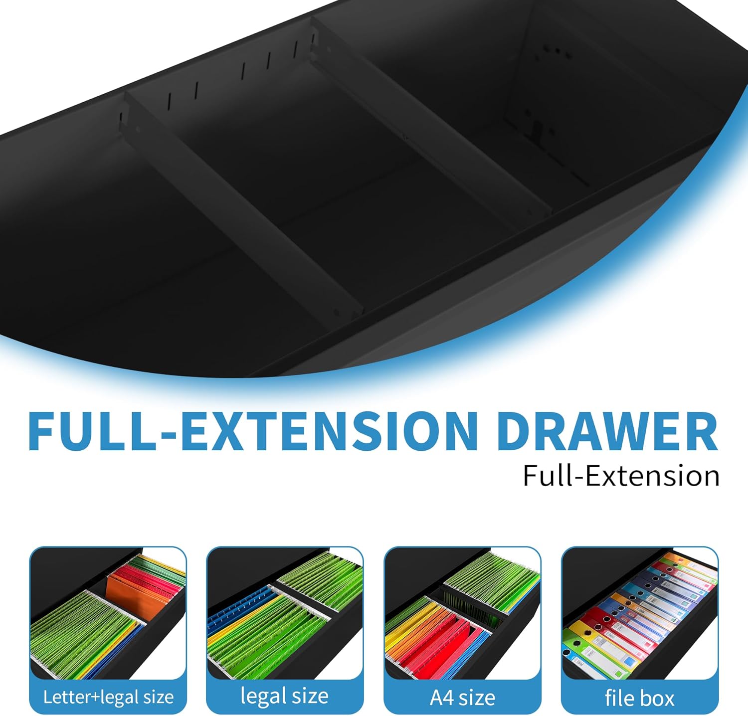 - ăLarge Storage SpaceăLarge 2 drawer lateral file cabinets have deep and spacious drawers, which can hold Letter, Legal, A4 and F4 size file folders. The adjustable hanging bars allow you to customize the drawers to your specific needs, keeping your files organized and easy to access.