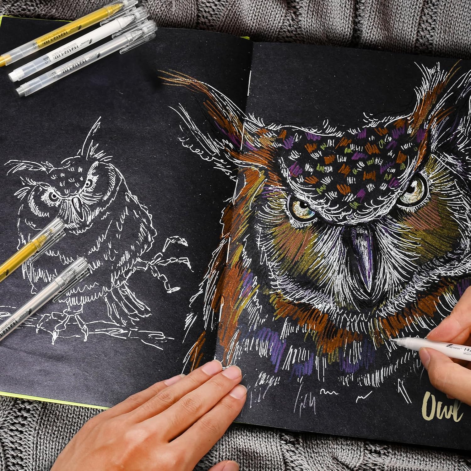 - Multi-Purpose - Writes on dark paper such as black paper, craft paper. White fine point gel pens for detail drawing sketching coloring, illustration, card making, scrapbook and other projects.
