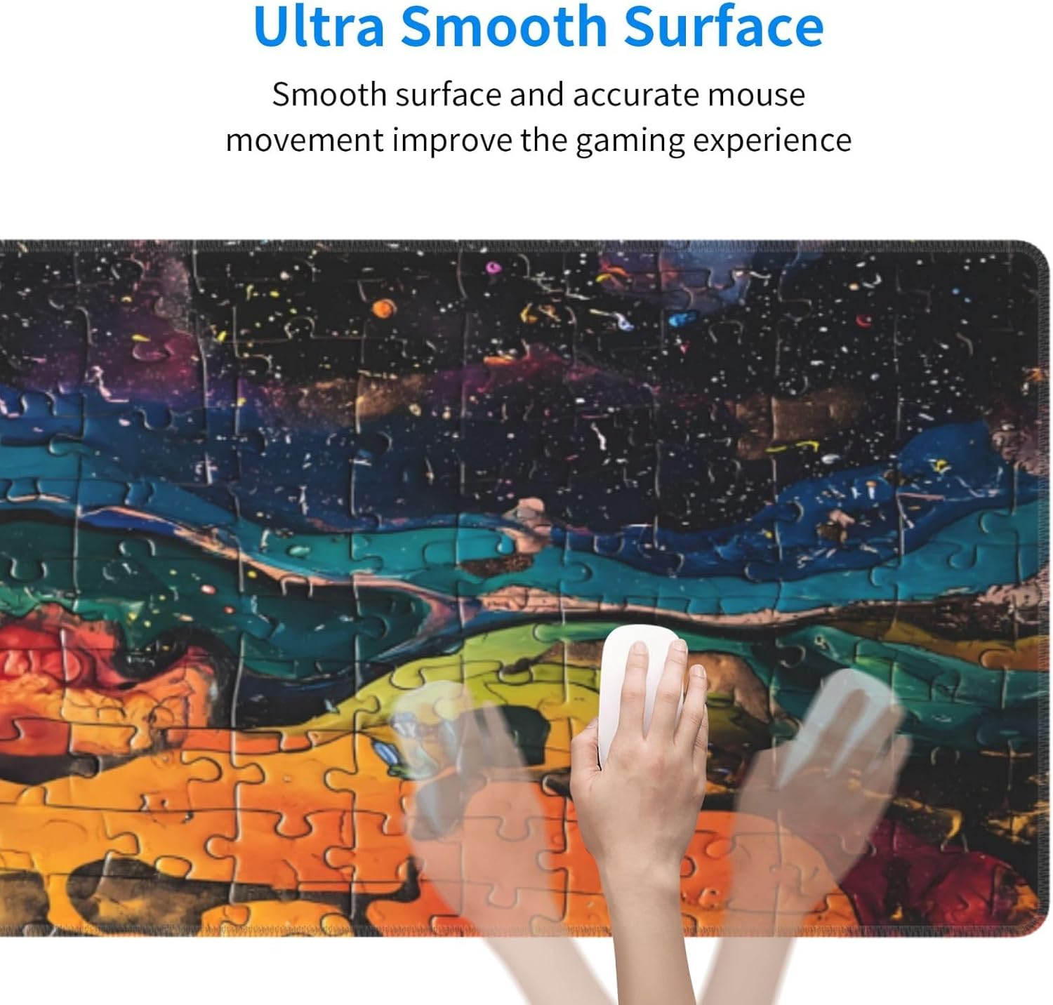 Gaming Mouse Pad Desk Pad,Extended Big Mouse Pad,31.5x11.8 Inch Long Computer Keyboard Mouse Mat Mousepad with 3mm Non-Slip Base and Stitched Edge for Gaming and Office⦠(Watercolor Puzzle)