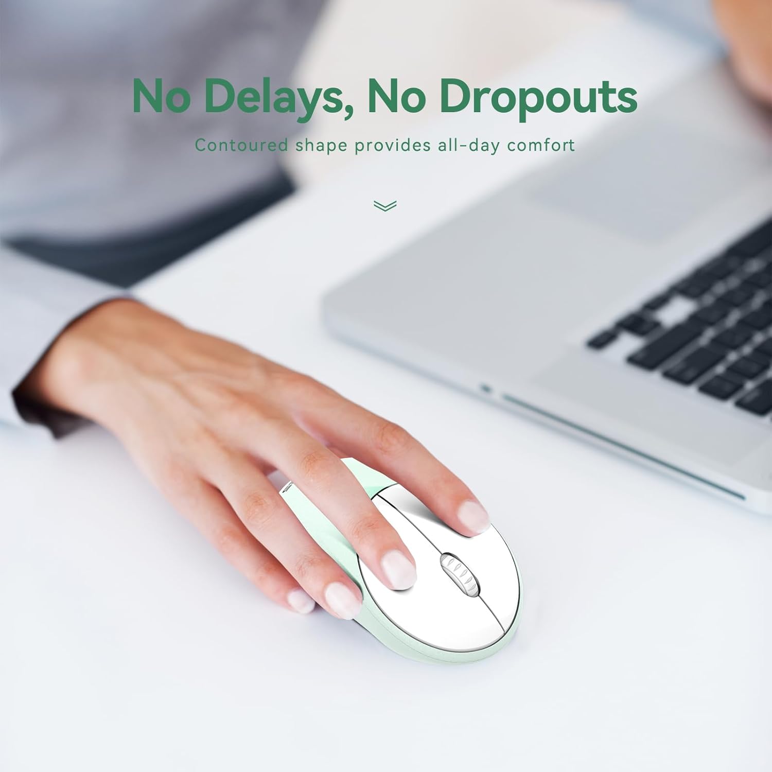 - 【Cute and Lightweight Mouse】 This wireless mouse features a non-slip roller for smooth operation and a unique raised bottom design to reduce friction and wear.The unique raised design on the bottom reduces friction and wear, ensures smooth sliding, provides good support and stability, extends service life, and can perfectly adapt to desktops made of different materials such as leather, wood, cloth, and paper. Additionally, the silent click design prevents disturbance to those around you