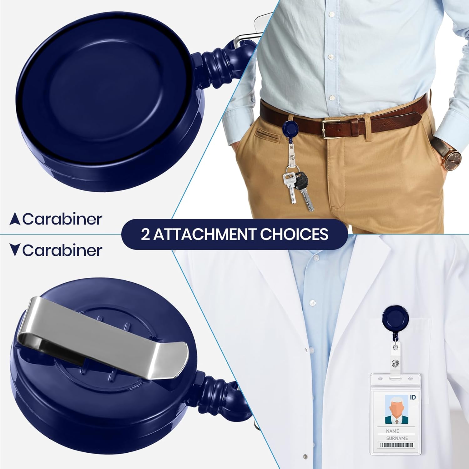 - Easy to use: a transparent card holder strap with button makes the badge reel easy to connect to most card holders and key rings; These retractable ID badge reel clips are very suitable for maintenance and security personnel