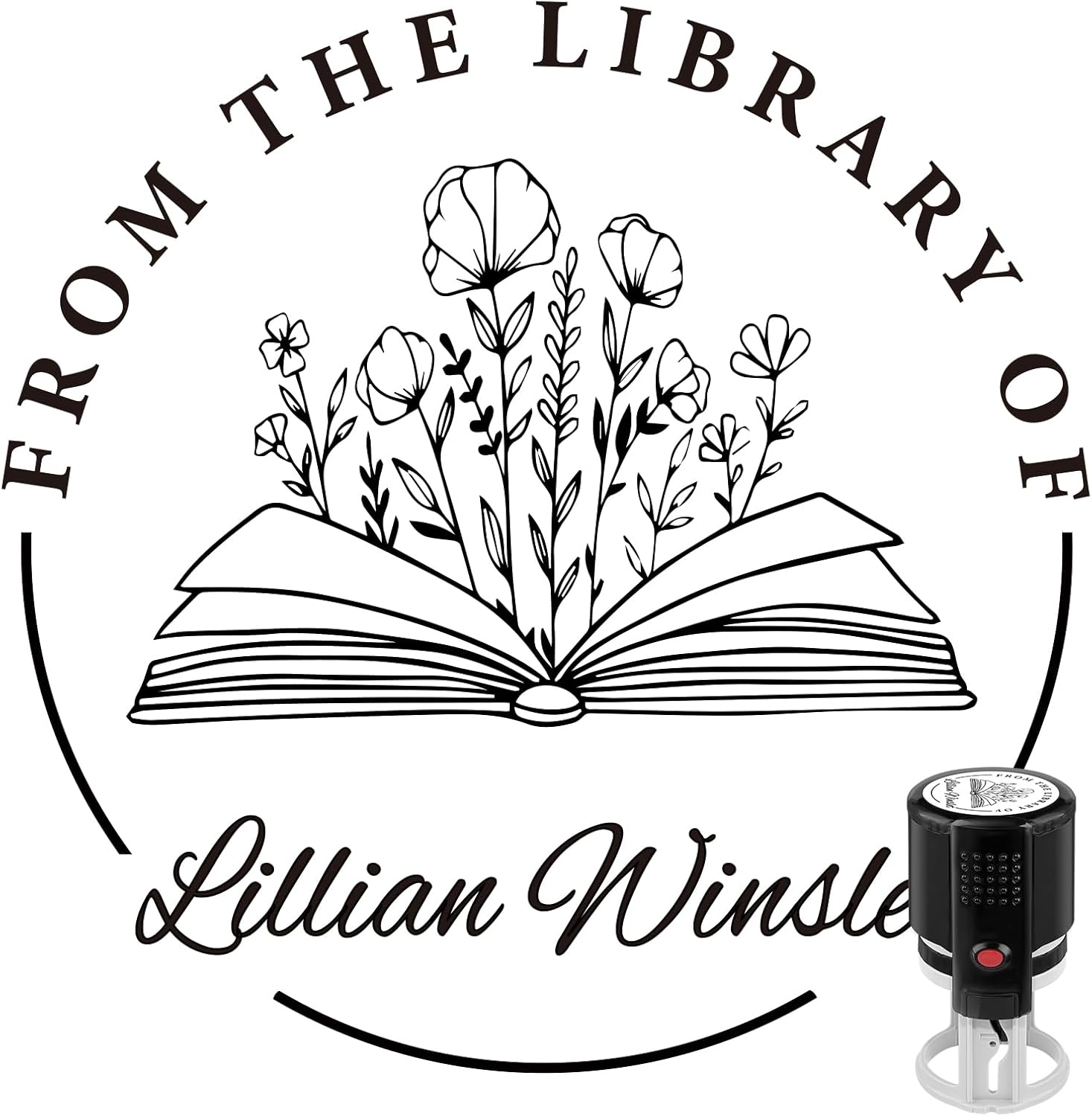 Custom Self-Inking Stamps | Personalized Book Stamp Gift for Book Lovers | 5 Ink Colors (Floral)