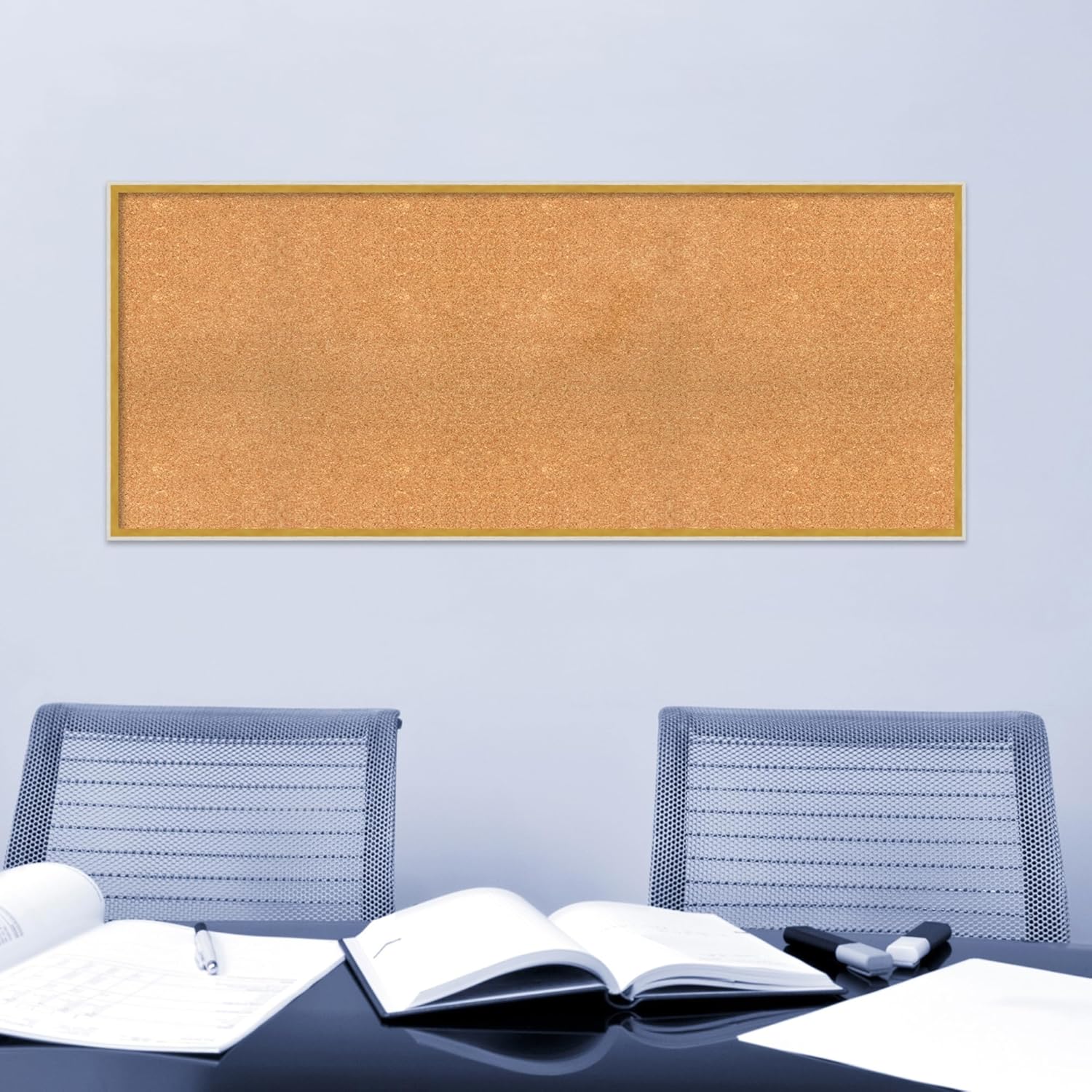 Amanti Art Natural Cork Board for Wall, 23x55 Vision Board with White Frame, Oversize Corkboard Office Decor for Home Organization, Modern Corkboard Pinboard to Display Items for Home Organization in