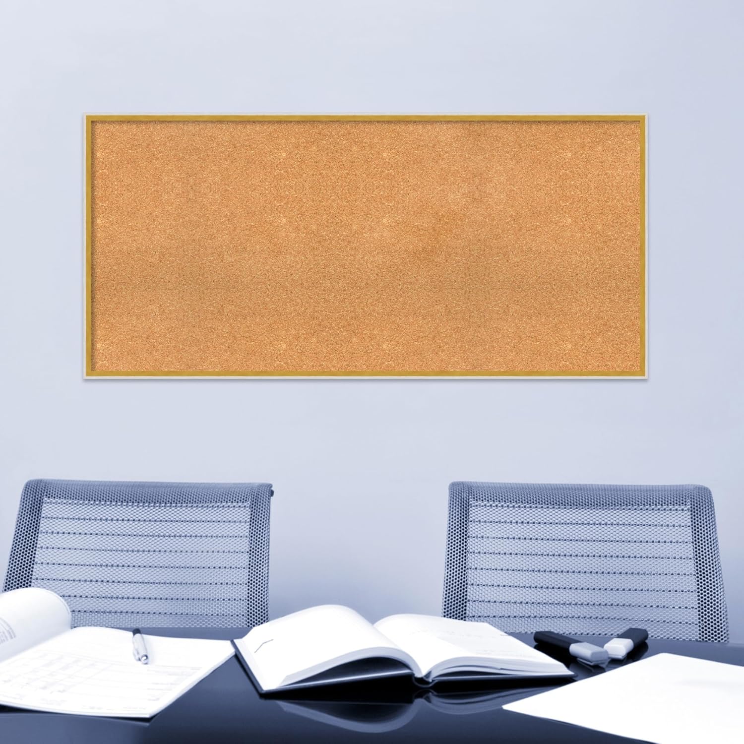 Amanti Art Natural Cork Board for Wall, 25x53 Vision Board with White Frame, Oversize Corkboard Office Decor for Home Organization, Modern Corkboard Pinboard to Display Items for Home Organization in