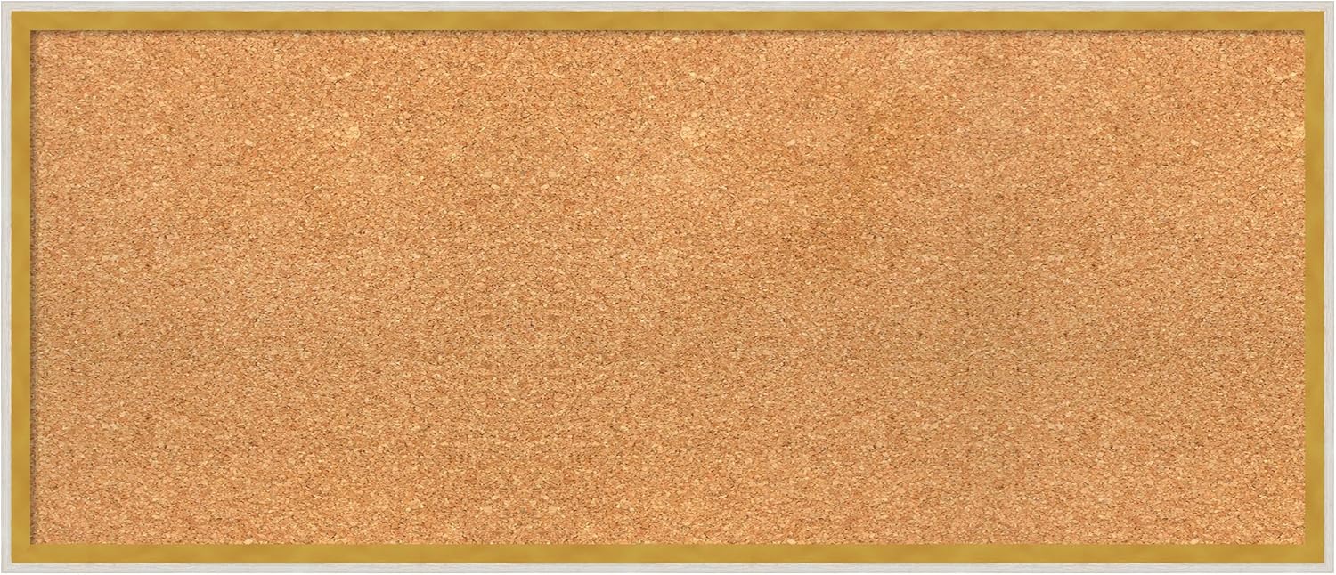 Amanti Art Natural Cork Board for Wall, 15x35 Vision Board with White Frame, Medium Corkboard Office Decor for Home Organization, Modern Corkboard Pinboard to Display Items for Home Organization in