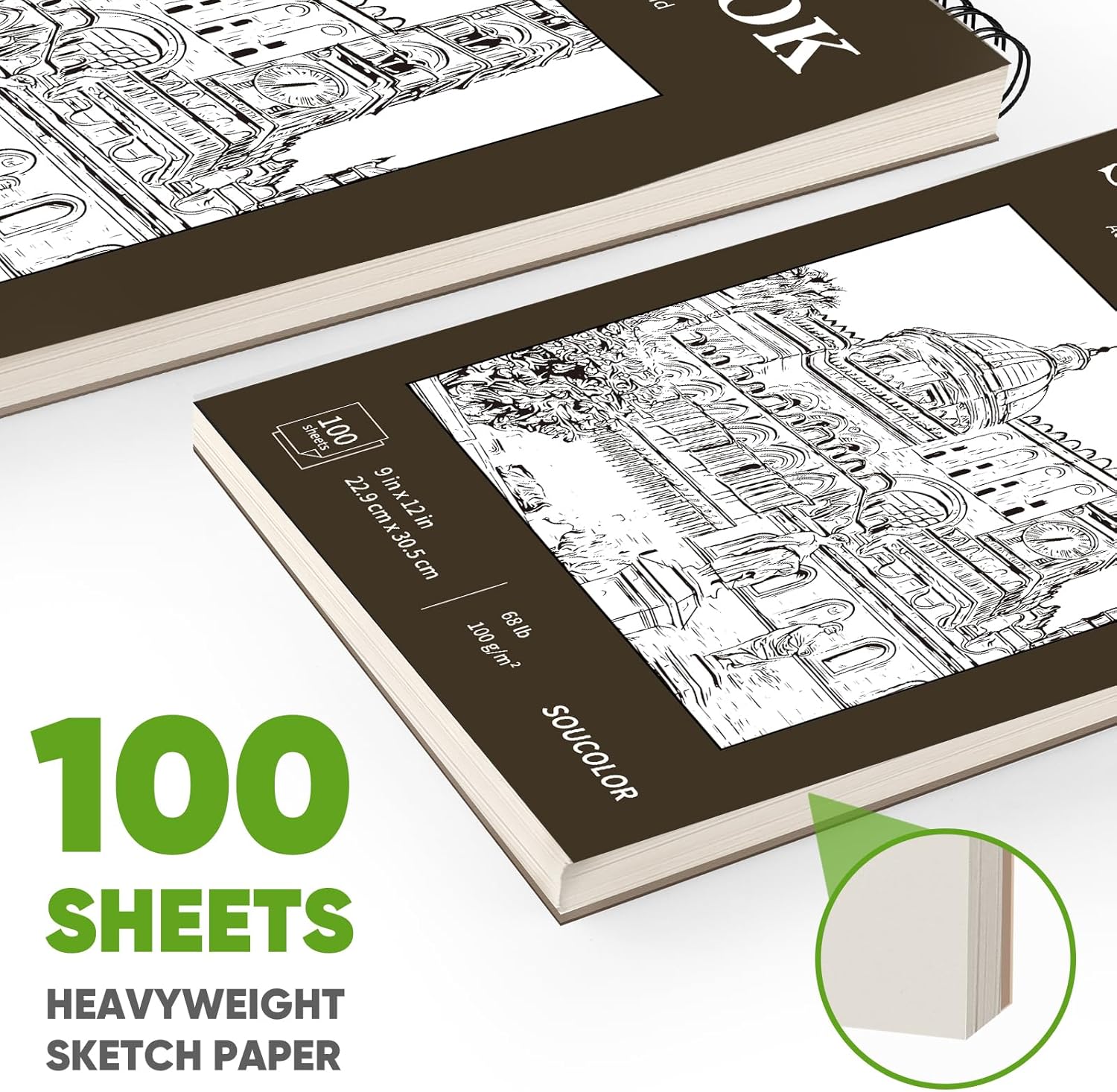 Classroom Must Haves Supplies for Teacher Student, Soucolor 9" x 12" Sketch Book 100 Sheets, Back to School Supplies, Art Sketchbook, Acid Free (68lb/100gsm) Artist Drawing Book Painting Sketching Pad