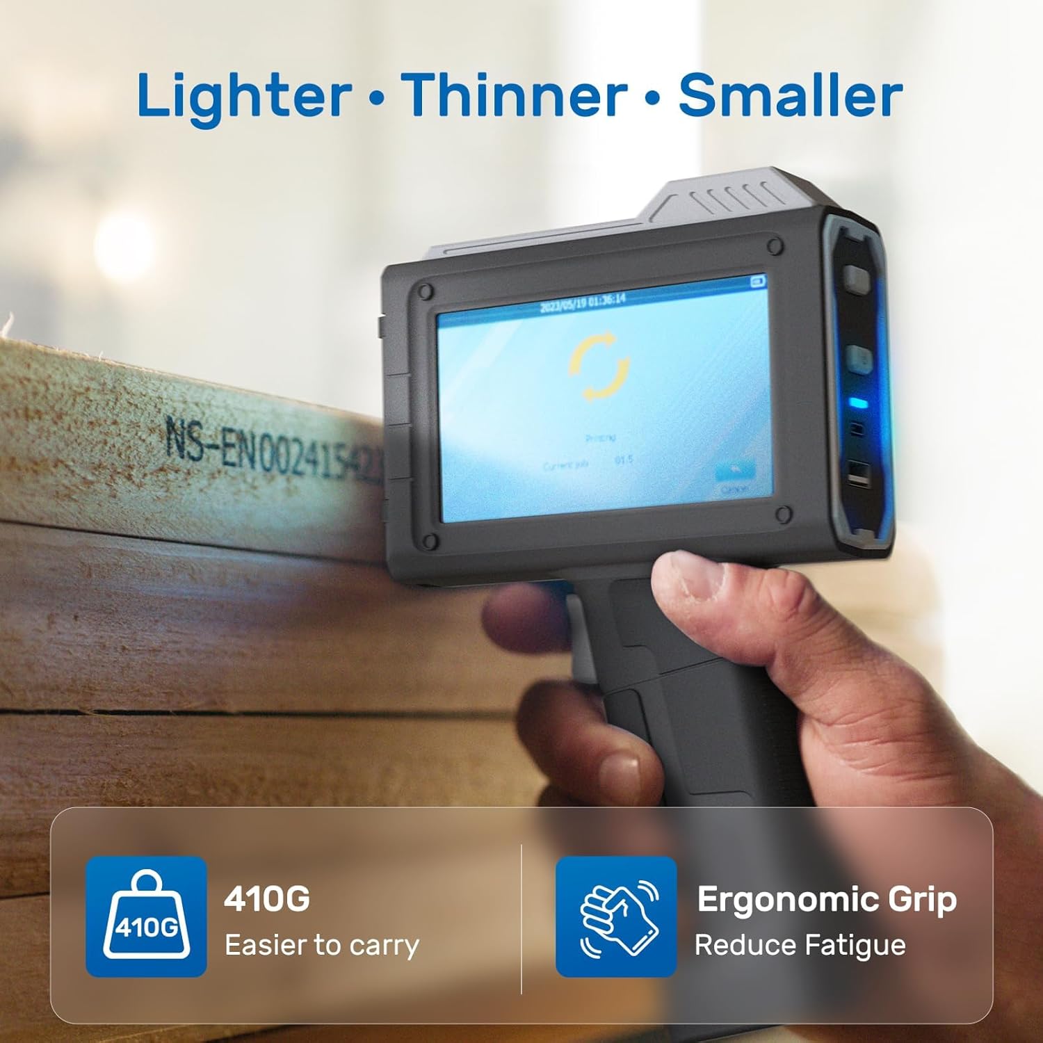 - Portable and Ergonomic: At just 410g, the Bentsai 6205B handheld printer gun is ideal for on-the-go tasks. It features a 4.3-inch HD capacitive touchscreen for easy use, while its ergonomic handle minimizes hand fatigue during extended use.