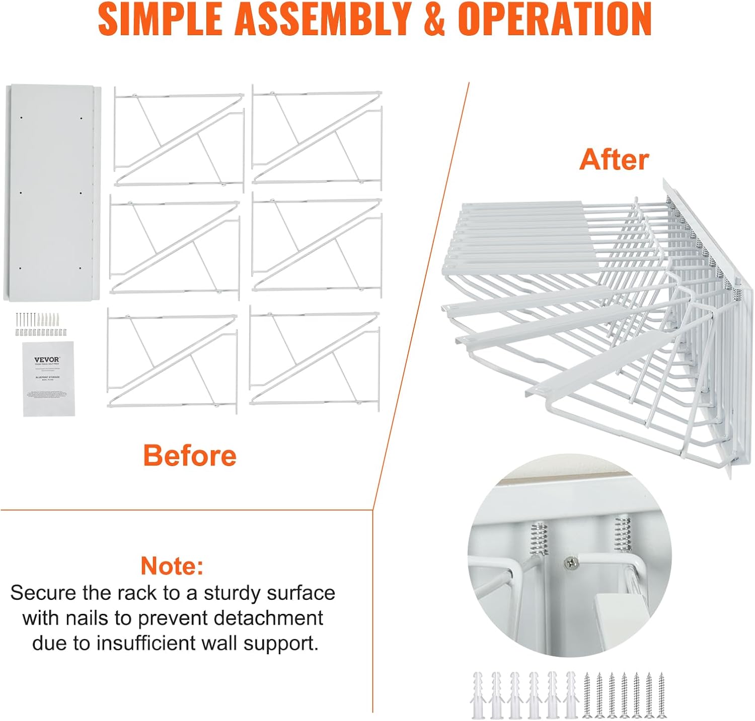 - Easy Assembly: We provide installation instructions and all necessary hardware, requiring no additional tools or complex steps. You can easily assemble and mount it to a wall or sturdy surface within half an hour.