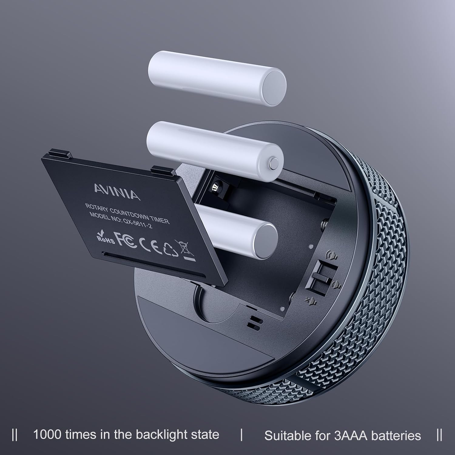 - 【 Energy saving & 365 days Guarantee】:Powered by 3 AAA batteries; if timer doesn't run and without any operation, display brightness will turn dim then light off in a few seconds. Don't worry it will not consume energy in the sleep mode. Each AVINIA TIMER has a full-year quality guarantee and detailed instructions manual, please rest assured to order.