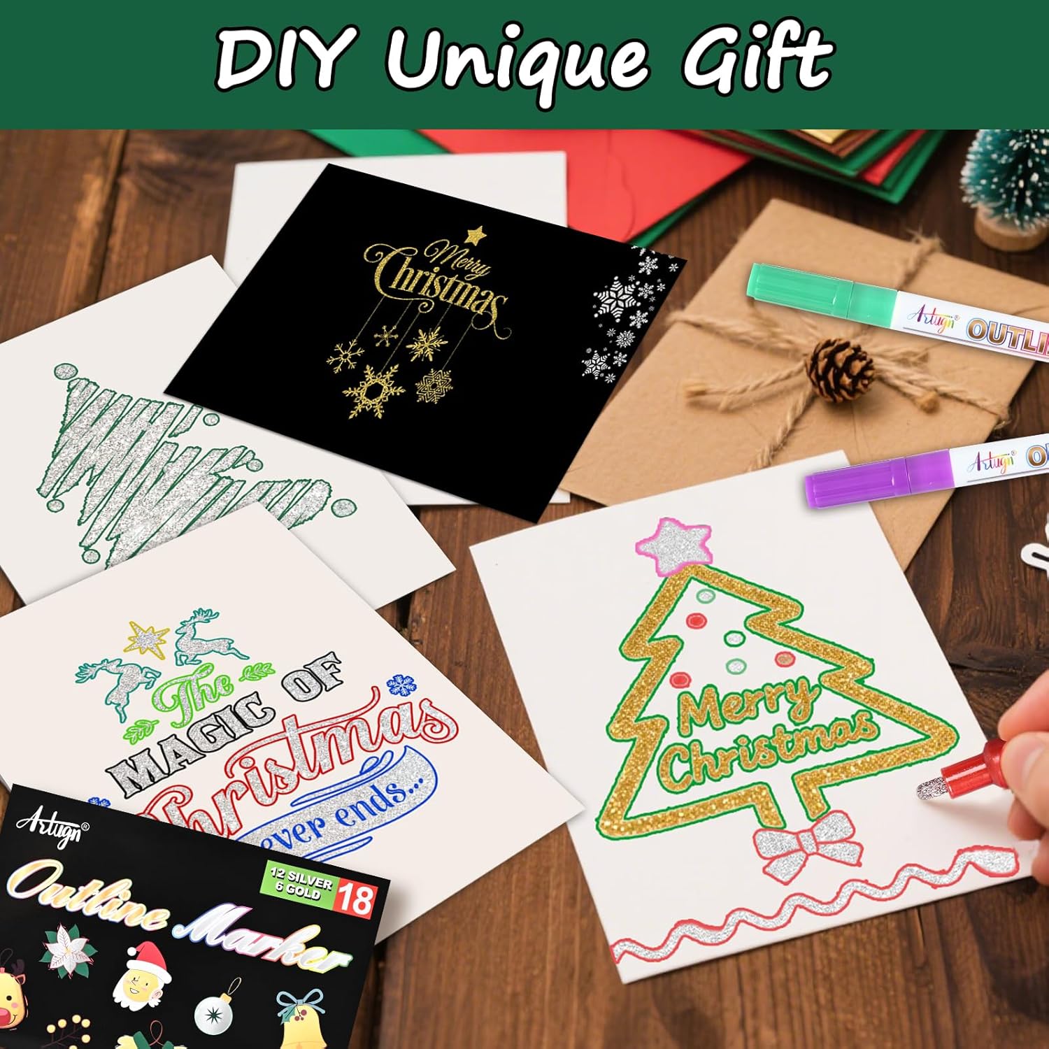 Glitter Markers Outline Pens, Teen Girl Gifts Trendy Stuff 4-16 Year Old, 18 Pack Gold and Silver Shimmer Metallic Marker Arts Crafts Supplies for Kids Ages 6 to 8, 9-12 Birthday Gifts for Tweens