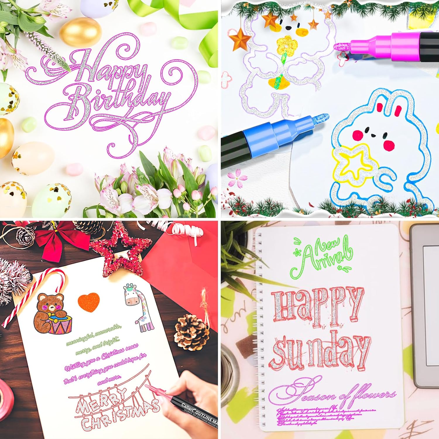 - Widely Used - These double outline markers are great for arts, crafts, coloring, stamping, Gift cards, Greeting cards, Christmas cards, Personality Posters, school projects, DIY Craft Projects.