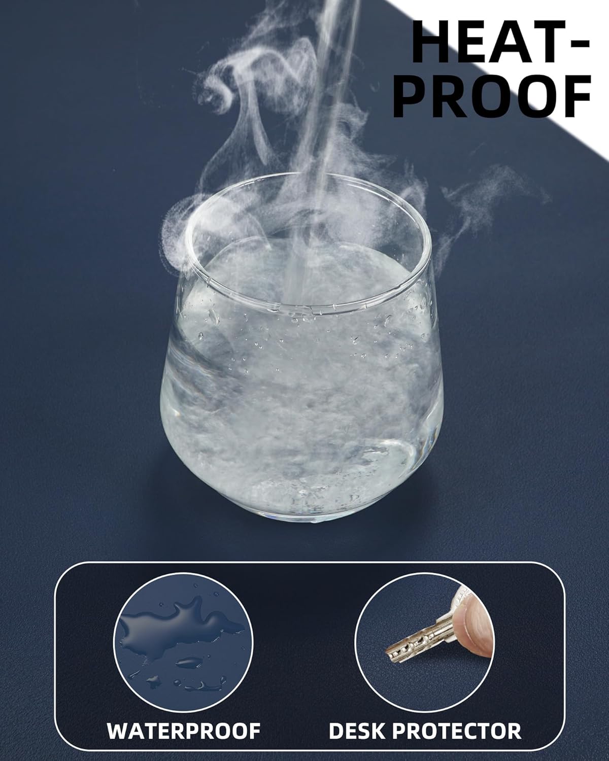 PU Leather Desk Mat Protector - 48"x17" Large Non-Slip Office Desk Pad, Waterproof Keyboard & Mouse Pad, Premium Workstation Cover for Home & Office (Midnight Blue)