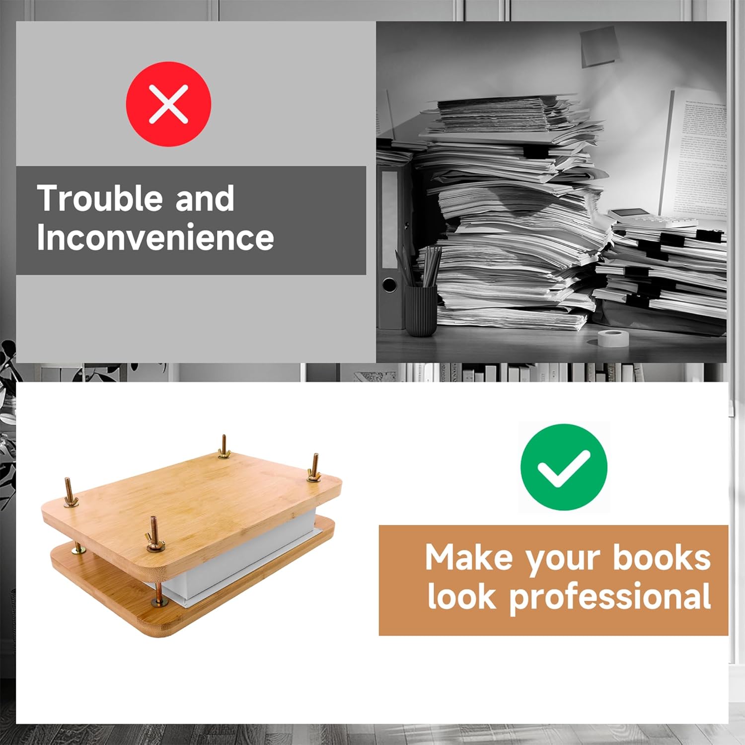 - High Quality Materials: The book press is made of high quality bamboo, The Screw and nut are stainless steel, It ensures durability and long-lasting performance.