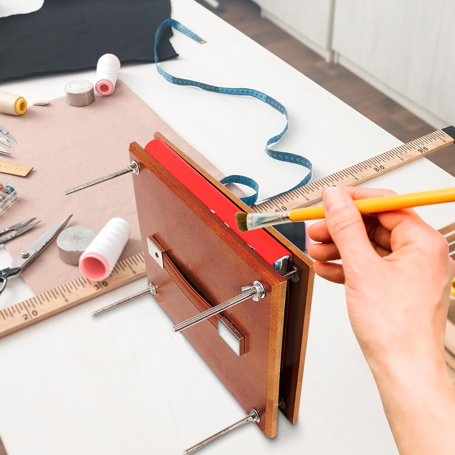 - EXTRA LARGE SIZE : With it's substantial dimensions of 9.8x7.87", our wood bookbinding press accommodates books of various sizes. The added leather grip handle improves handling, making it easier to move and position, thereby boosting its portability.