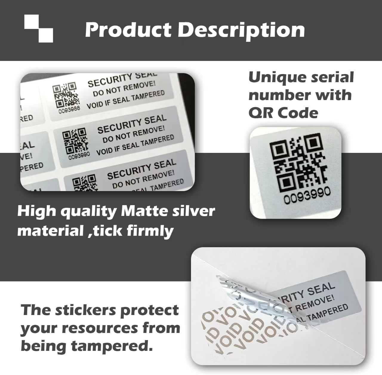 200pcs Security Warranty Void qrcode Stickers with Serial Number Tamper Proof Evident Sealing Label for Package(2x0.6 inches,Matte Silver)