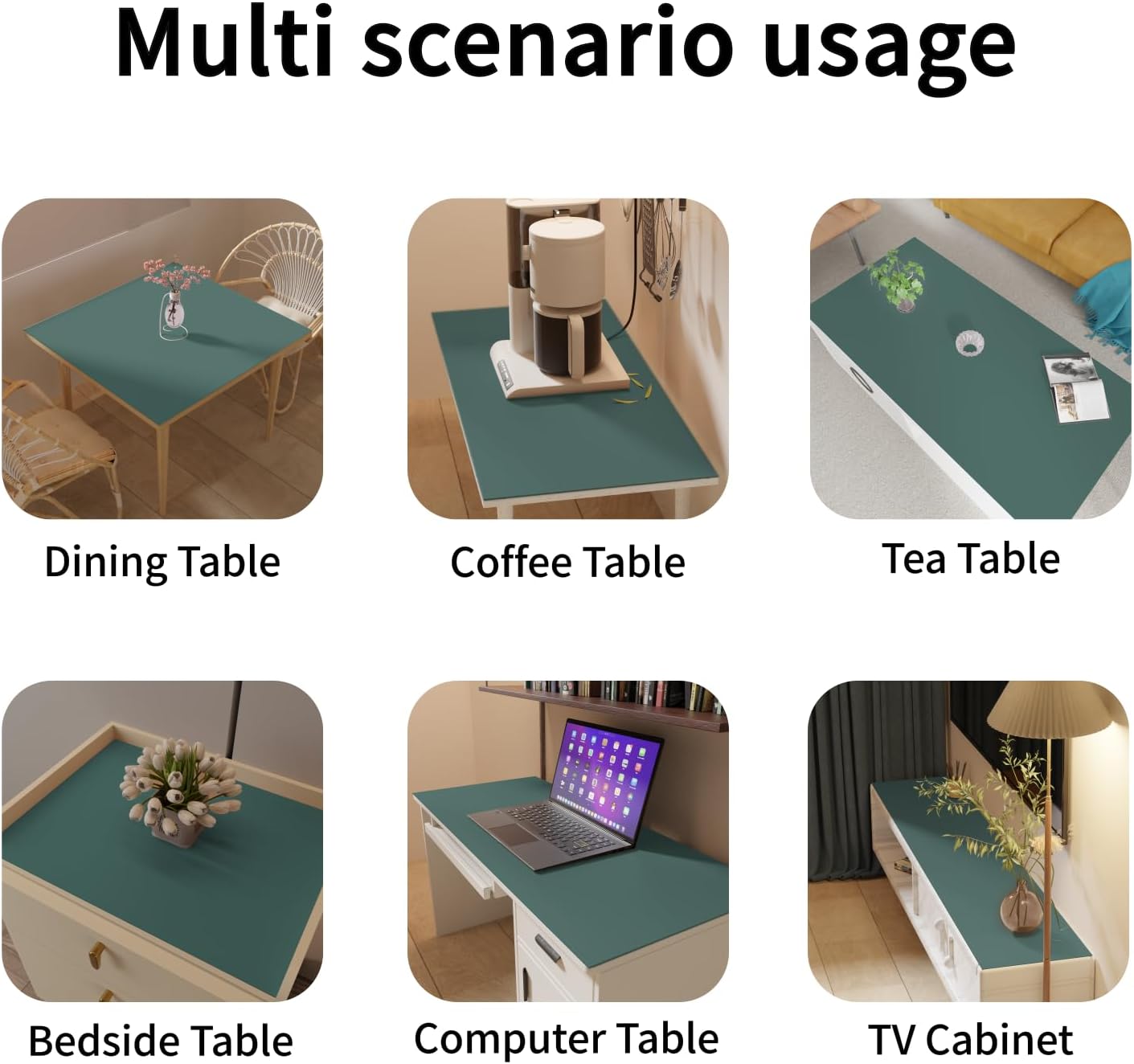 - Safe Material:The Table Cover Protector is made of faux leather(Non genuine leather)material,Non toxic odorless.The opacity of the product can effectively conceal flaws on the surface of furniture and tabletops.The product has a thickness of 1.8mm, with a soft and durable texture that can effectively cushion the collision between tableware and tabletop.it shields furniture from scratches, scuffs, stains, spills, and damage.