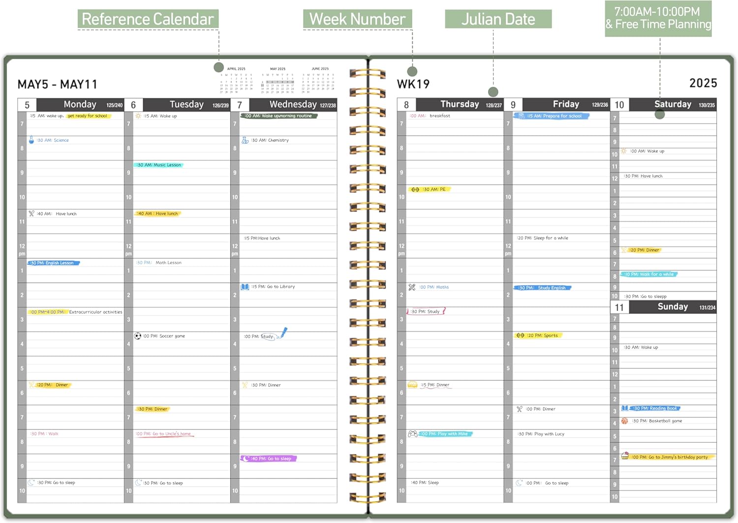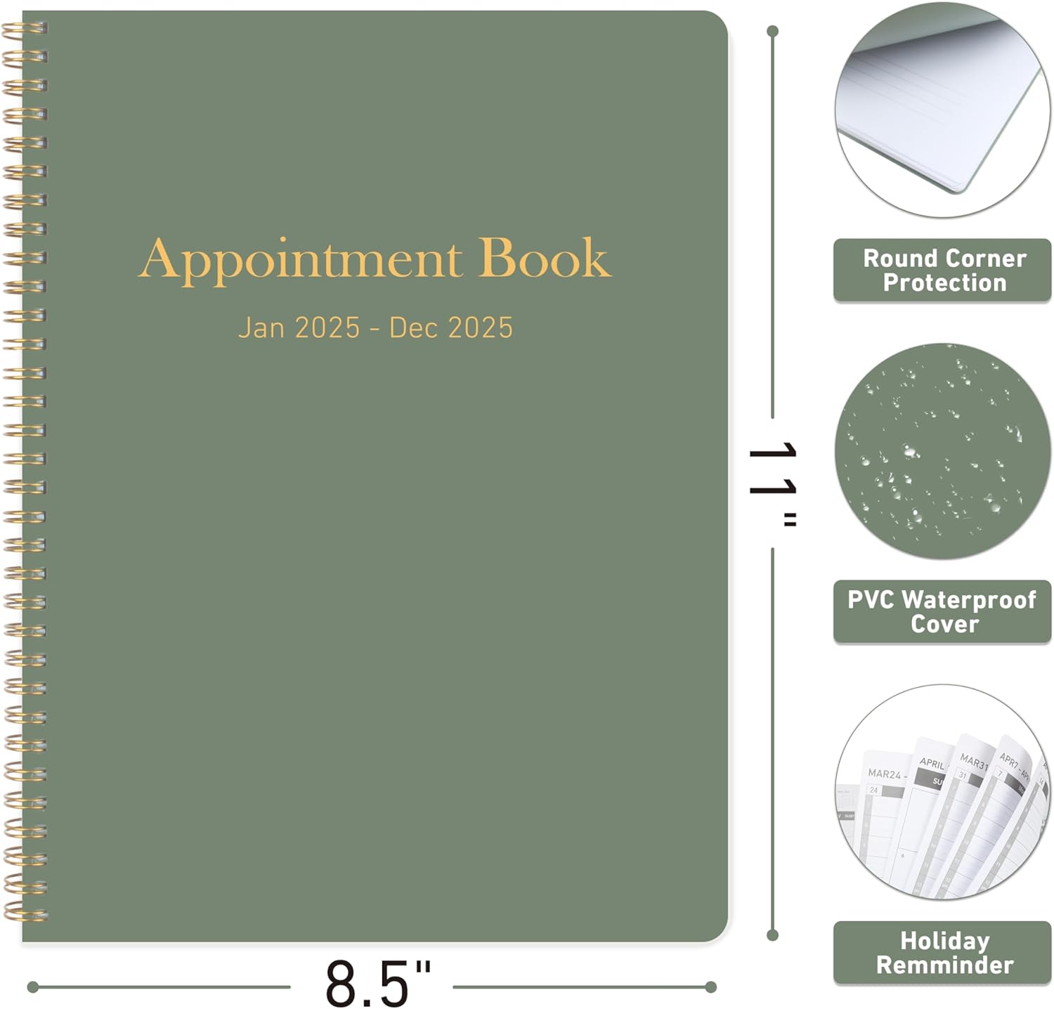 Appointment Planner 2025 - Daily Hourly Schedule Planner from 7am - 10 pm, Weekly & Monthly Hourly Appointment Book Calendar from Jan 2025 - Dec 2025, 9" x 11"-Green