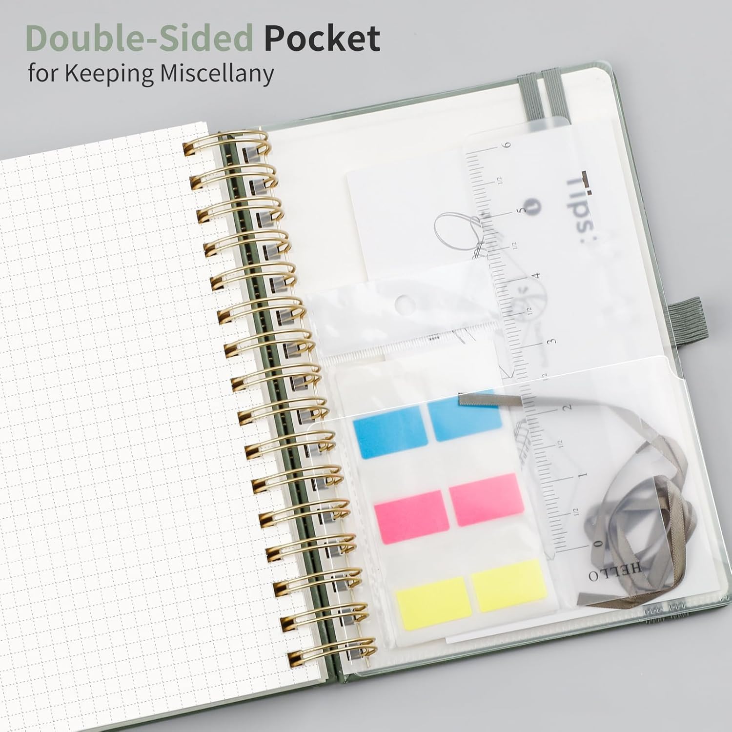 - Graph Journal Additional Features: The graph notebook includes sticky notes, 1 DIY ribbon bookmark, a double-sided PVC back pocket, 1 pen holder, 1 removable ruler, 2 Elastic bands, and a humane rounded arc corner design