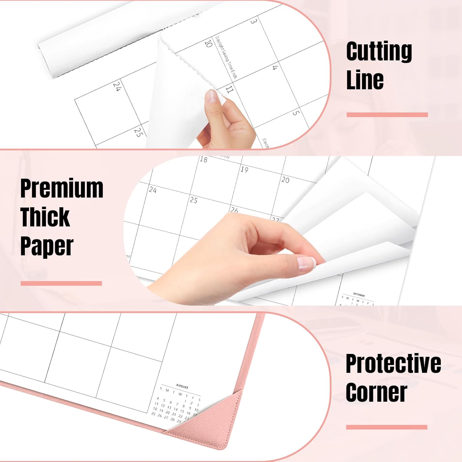Gannyfer Desk Calendar 2025-2026, July 2025-Dec 2026, 18 Monthly Large Calendar 2025-2026, 22" x 17" Desktop Pad Calendar for Planning and Organizing In Your Family, School or Office-Pink(6 Stickers Included)
