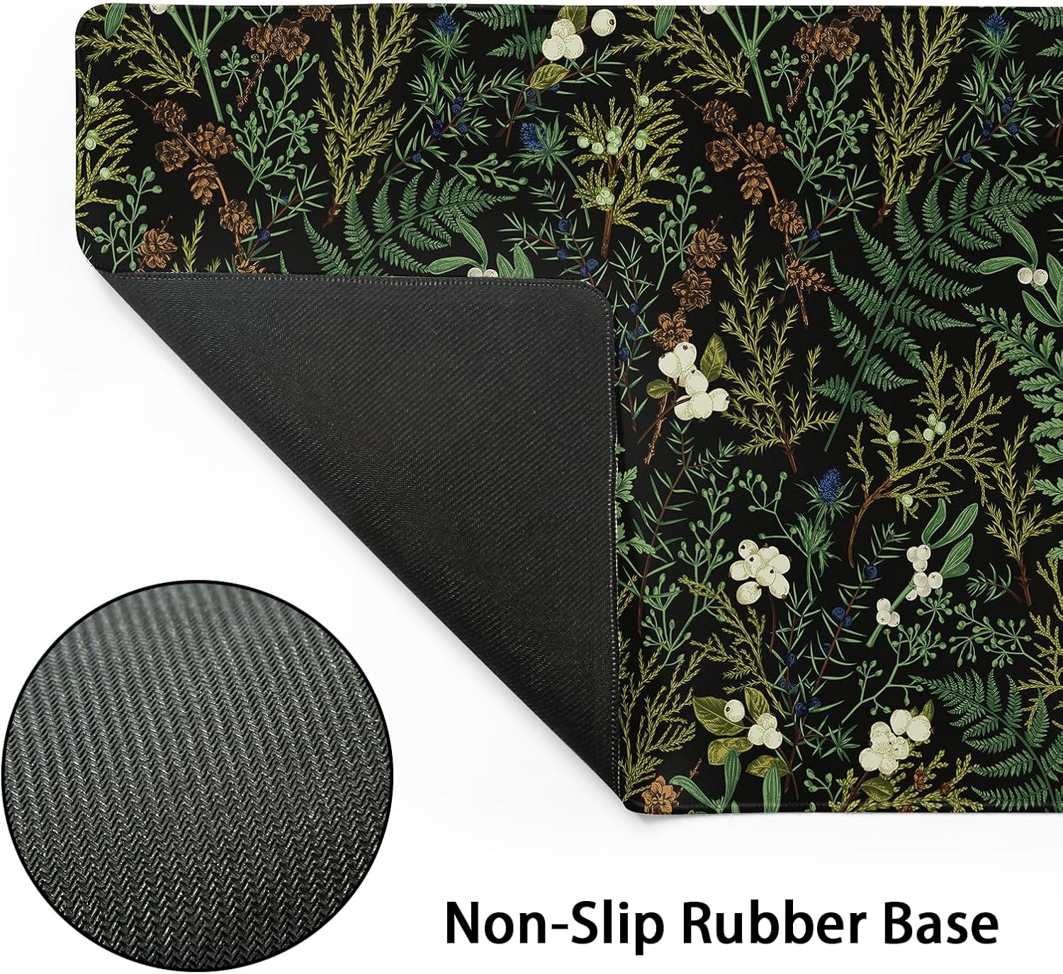 Black Aesthetic Vintage Botanical Gaming Mouse Pad Large XL Cute Forest Green Plant Nature Floral Extended Large Big Mousepad Non-Slip Stitched Edge Long Mat for Desk Computer,24x14 Inch,60x35 CM