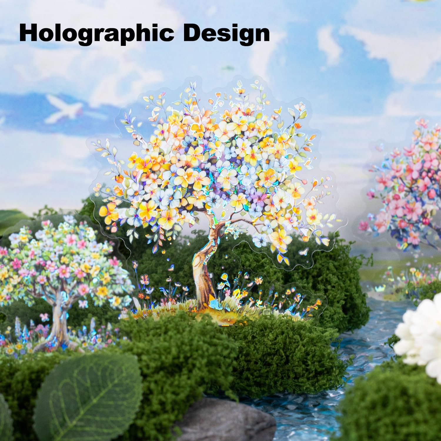 Flower Tree Scrapbook Stickers Set, 60PCS Holographic Ephemera for Scrapbooking, Junk Journaling, Crafting, DIY Projects, Diaries, and Art Supplies