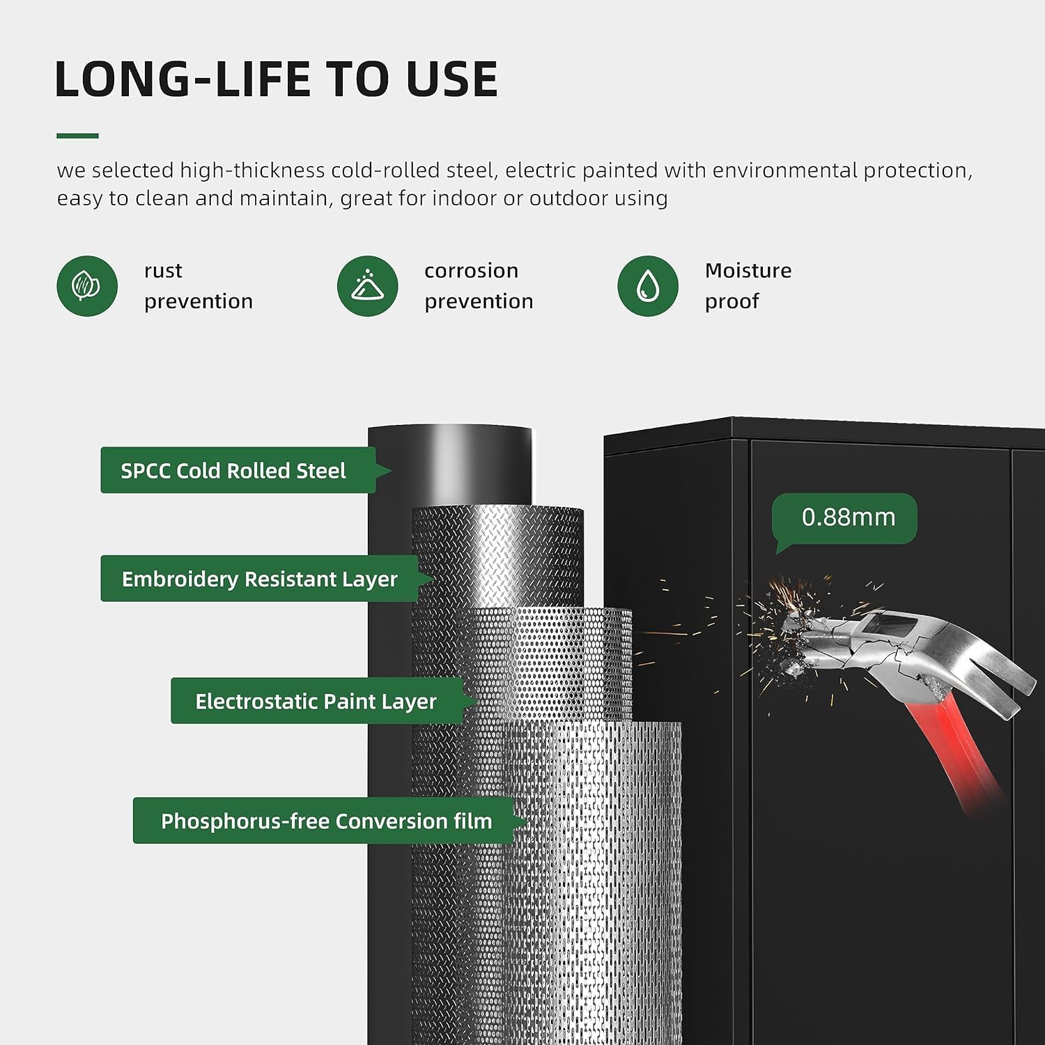 - [Heavy-duty metal structure]:Greenvelly metal storage cabinet is made of cold rolled steel with a thickness of 0.8mm and reinforced construction which makes the black metal file cabinet with lock sturdy and durable. The black storage cabinet with pegboard also adopts a new powder coating, which is scratch resistant, wear-resistant and easy to clean. The steel locking cabinet is more safe and reliable, and has no peculiar smell.