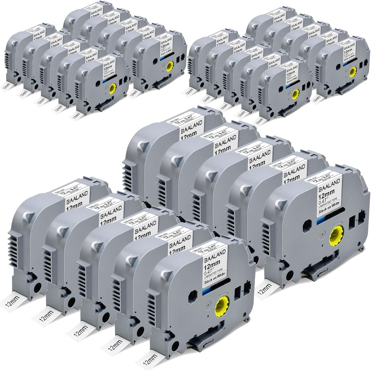 - 30 Pack BAALAND TZe-231/TZE231/TZ231/TZ231s/TZ-231/TZc-231 Replacement for Brother P-Touch Label Tape 12mm 0.47 Laminated White Tape. Color: Black Print on White Tape. Width: 1/2" (12mm). Length: 26.2' (8m), 30 pack total 828 feet