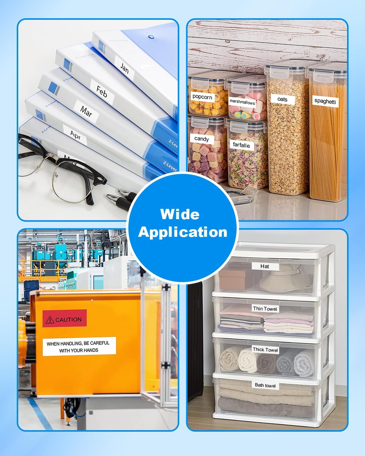 - Wide Application - BAALAND Tz231 label tape replacement for ptouch label tape could be used for home, Office, or industrial applications. Perfect for labeling kitchen, shelving, and supply cabinets. Ideal for labeling items where you need some information, like cups, DVDs, light switches, file folders, containers, cables, flower pot, etc