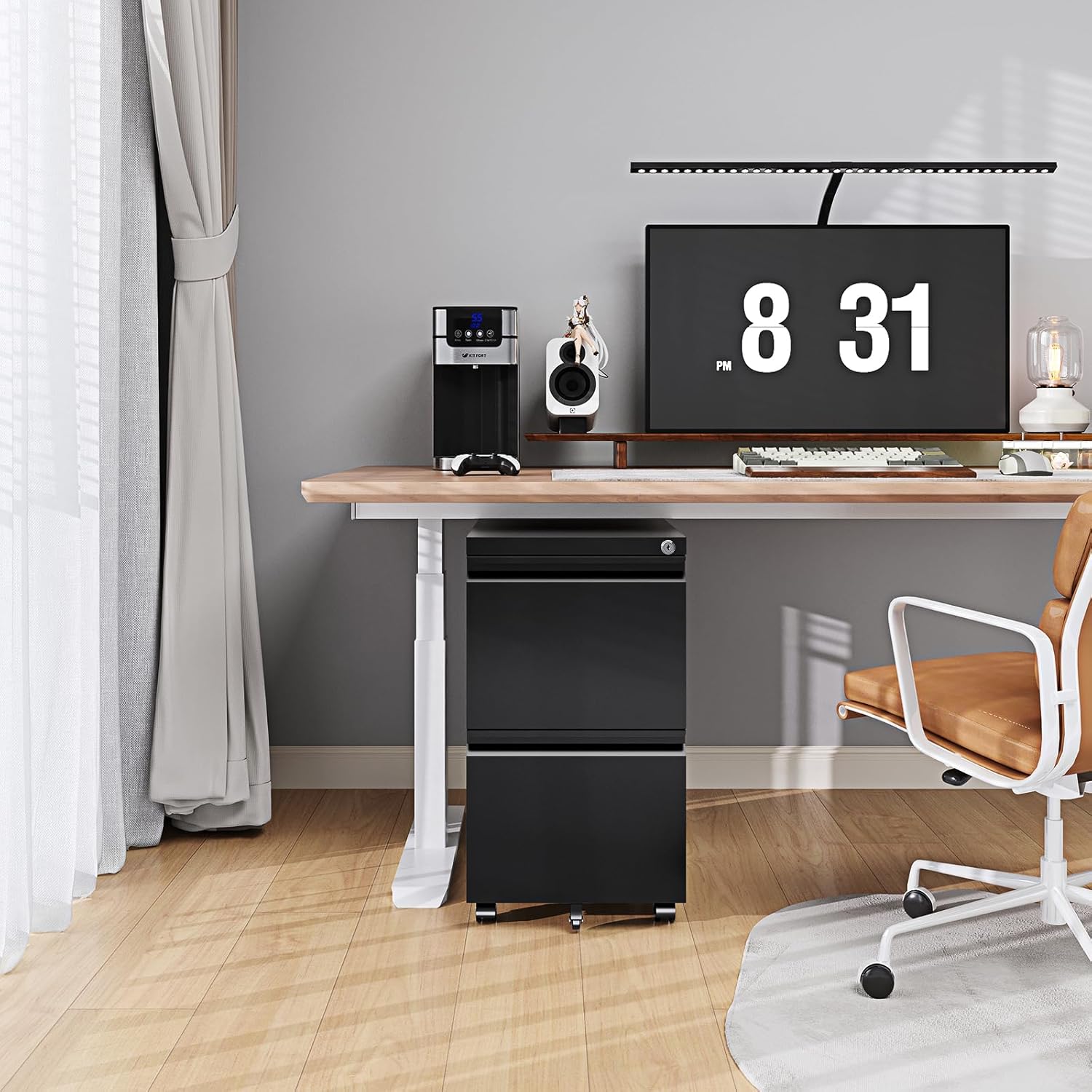 2 Drawer File Cabinet On Wheels Mobile File Cabinet with Lock Under Desk Metal Filing Small Rolling Black Printer Stand for Home Office Assembly Required