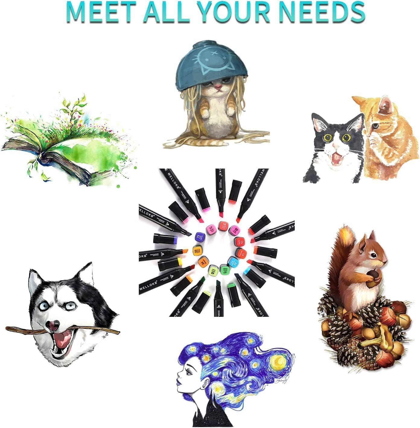 Dual Tip Art Markers, 24 Colors Drawing Markers - Coloring & Sketching for Adults & Kids 8-12