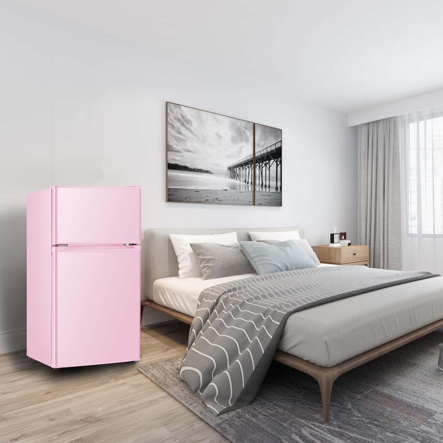 Mini Fridge With Freezer,3.2 Cu.Ft Compact Refrigerator,Mini Refrigerator With 2 Doors For Bedroom,Office,Kitchen,Apartment,Dorm(pink)