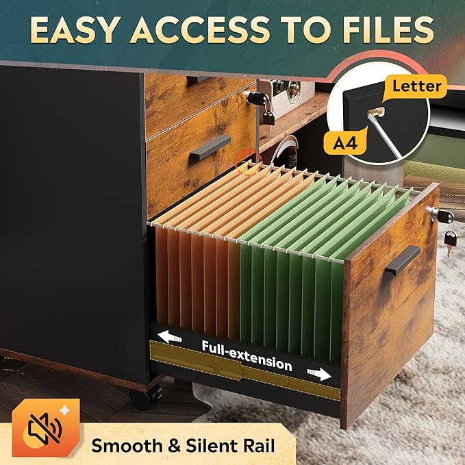 - Multifunctional File Cabinet with Lock: This file cabinet features open storage spaces, file drawers, and storage cabinets, allowing you to organize office equipment, papers, files, and supplies neatly. It is equipped with 2 locks, identifying 3 lockable drawers to keep your personal belongings secure.